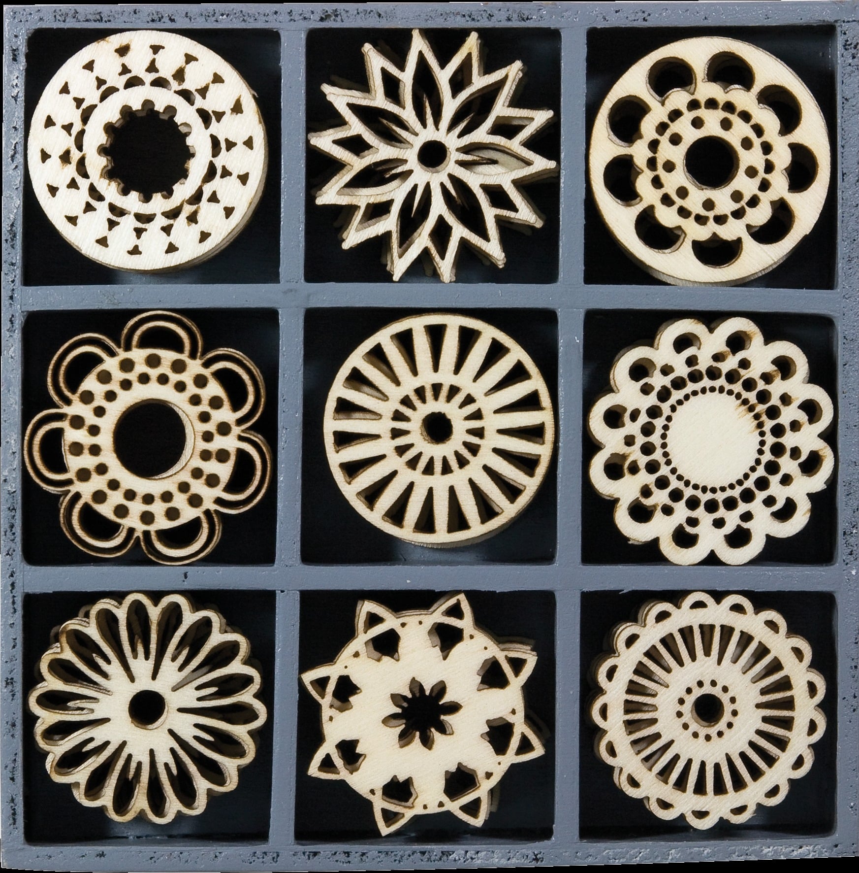 Decorațiuni Lemn Crăciun Fantasy Circles, 45 Piese, 9 Modele, 3cm, Cod Produs 18521110