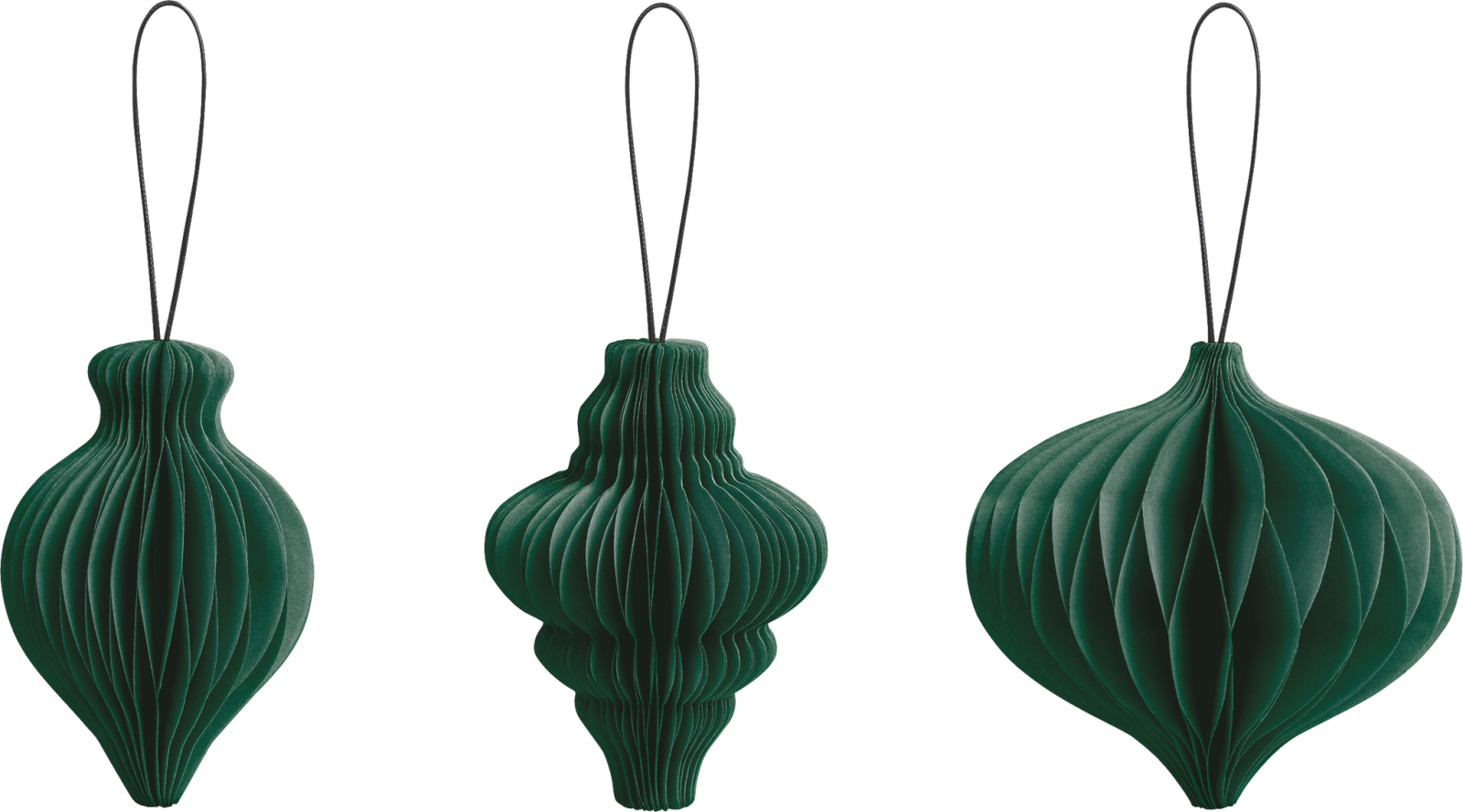 Decorațiunile sunt realizate din hârtie de înaltă calitate, într-o nuanță profundă de verde, și vin în formă de picături de diferite dimensiuni.