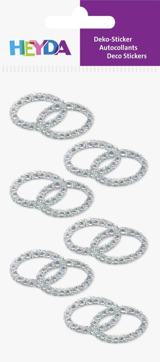 Stickerul decorativ cu două inele cu strasuri și perle transparente de la Heyda este perfect pentru a adăuga un plus de strălucire și eleganță proiectelor tale creative. Fie că vrei să decorezi felicitări, invitații, albume de amintiri sau alte proiecte de artă și creație, aceste stickere vor adăuga un element de rafinament și frumusețe.