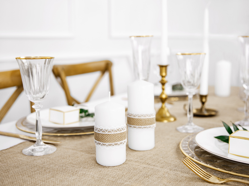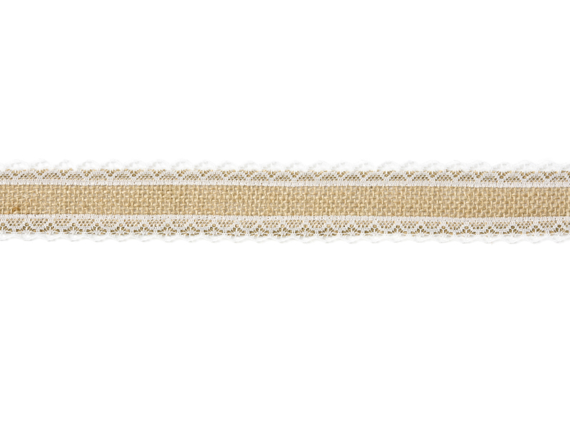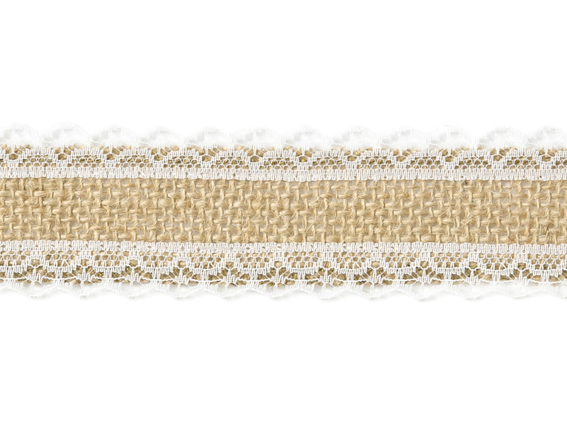 Jute tape with white lace, width approx. 4 cm, length approx. 5 m.