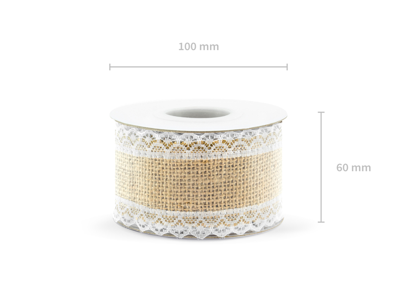 Jute tape with white lace, width approx. 5 cm, length approx. 5 m.