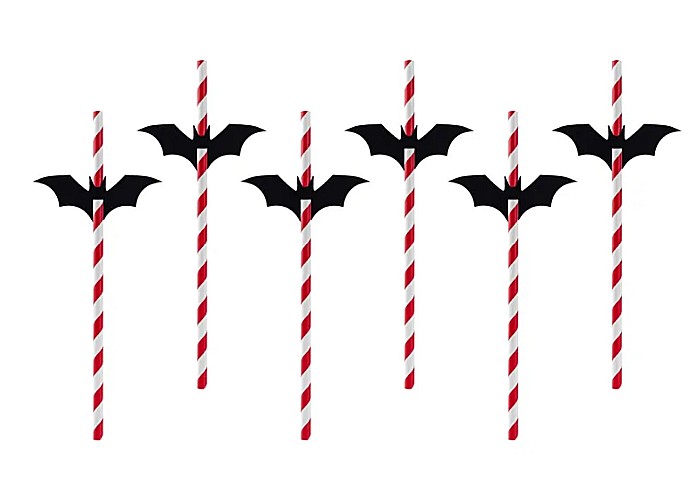 PAIE DIN HARTIE PENTRU BAUTURI STRAWS BATS, RED WITH BLACK, 19,5CM 6/SET SLH2