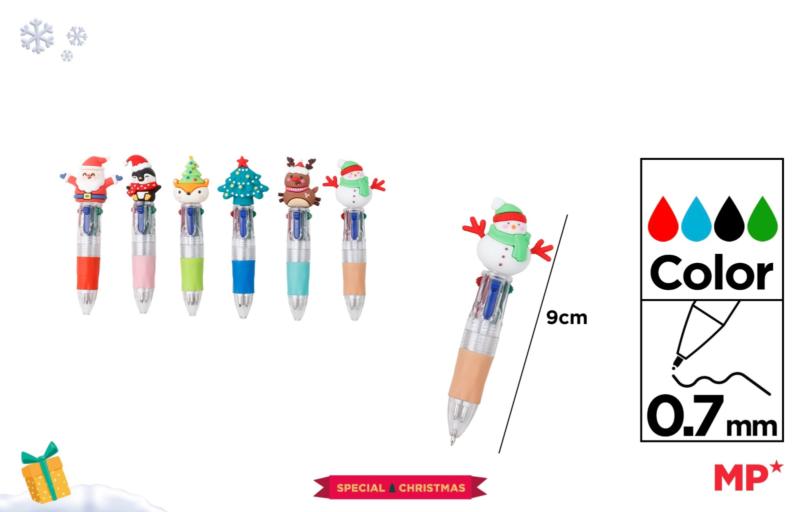 Acest pix cu bilă multicolor face parte din colecția Special Christmas și este un instrument practic, ideal pentru notițe, marcaje sau desen, oferind culorile de bază necesare, fără a schimba instrumentul de scris.