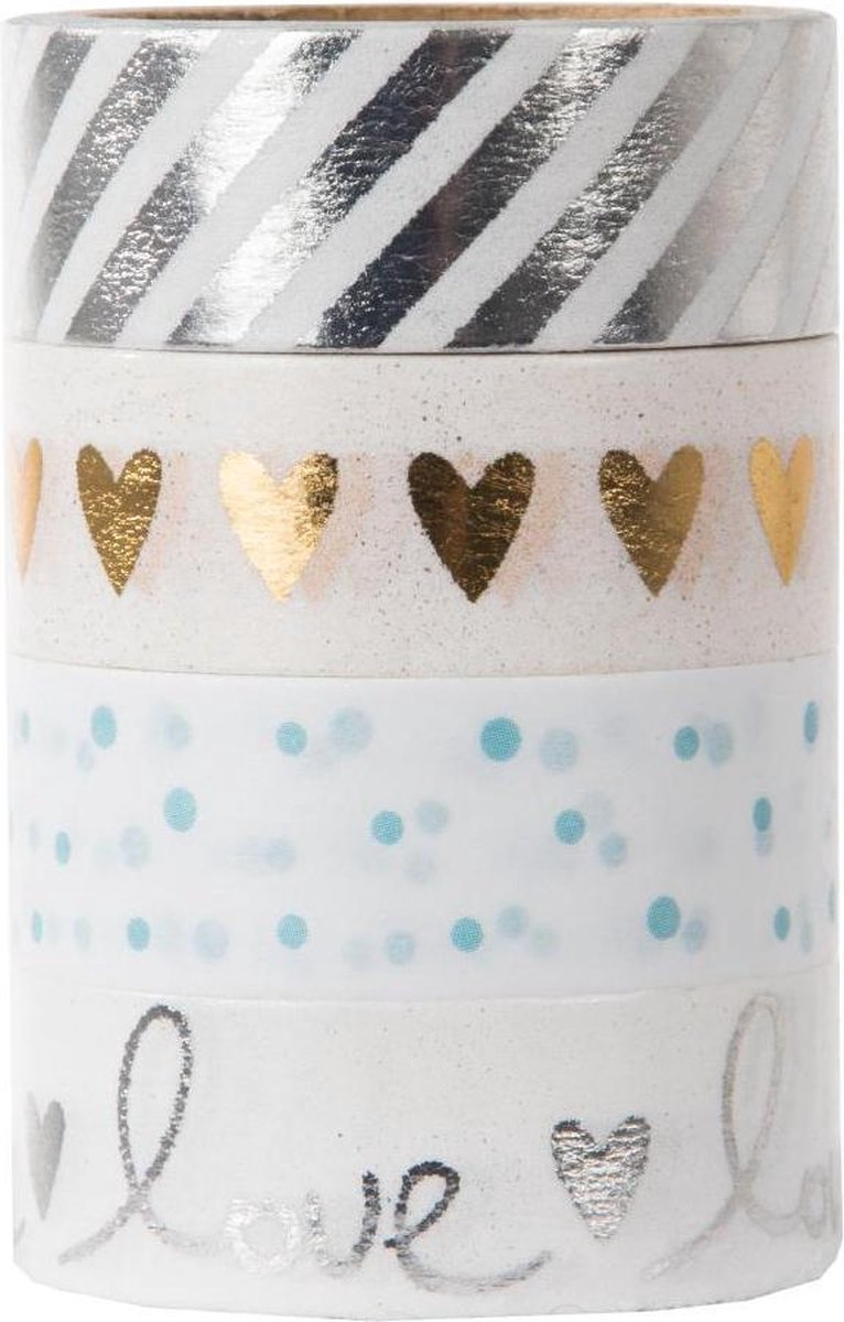 Bandă adezivă decorativă Washi Tape Love Silver, model 10627/10629, de la Goldbuch, este perfectă pentru a aduce eleganță și rafinament în proiectele tale creative, precum caiete, jurnale, bullet journal-uri sau alte decorațiuni tematice.