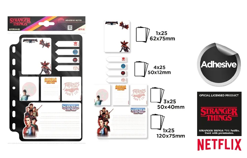 Etichete: etichete autoadezive, școală, Note adezive, Stranger Things, Design tematic, stick index IPB, suport pentru note, NFST004-02, Birou, Organizare