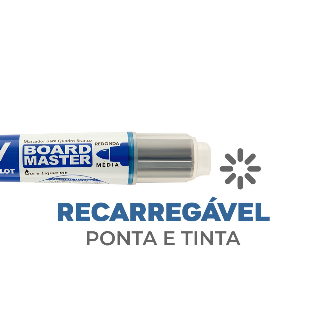 V-BOARD MASTER este un marker de tablă albă cu cerneală lichidă, reîncărcabil. Noul sistem de irigare cu cerneală permite scrierea instantă şi constantă fără agitarea în prealabil sau apăsarea pe vârful markerului.