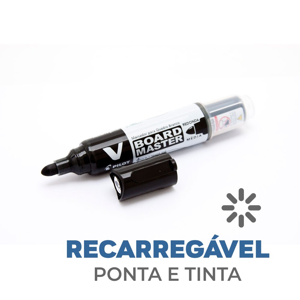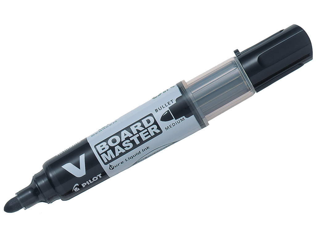 V-BOARD MASTER este un marker de tablă albă cu cerneală lichidă, reîncărcabil.