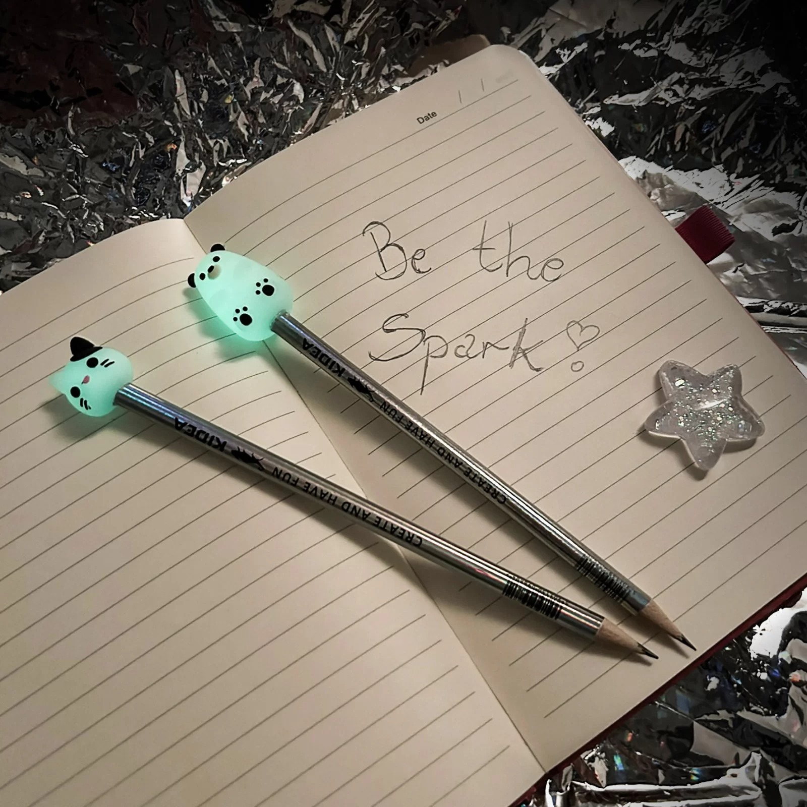 Acest set conține 2 creioane HB cu mine moi, perfecte pentru scris și desenat. Figurinele drăguțe de pe capătul creioanelor se luminează puternic în încăperi întunecate după ce sunt expuse la lumina soarelui sau a unei lămpi.