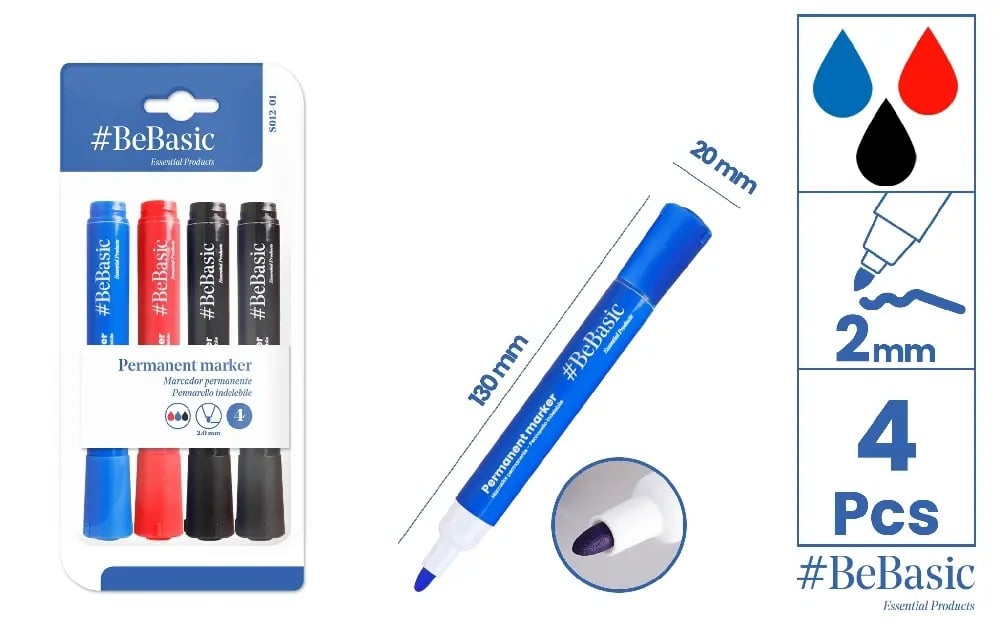 Marker Permanent BeBasic 2.0mm - Set de 4 Culori (S012-01)