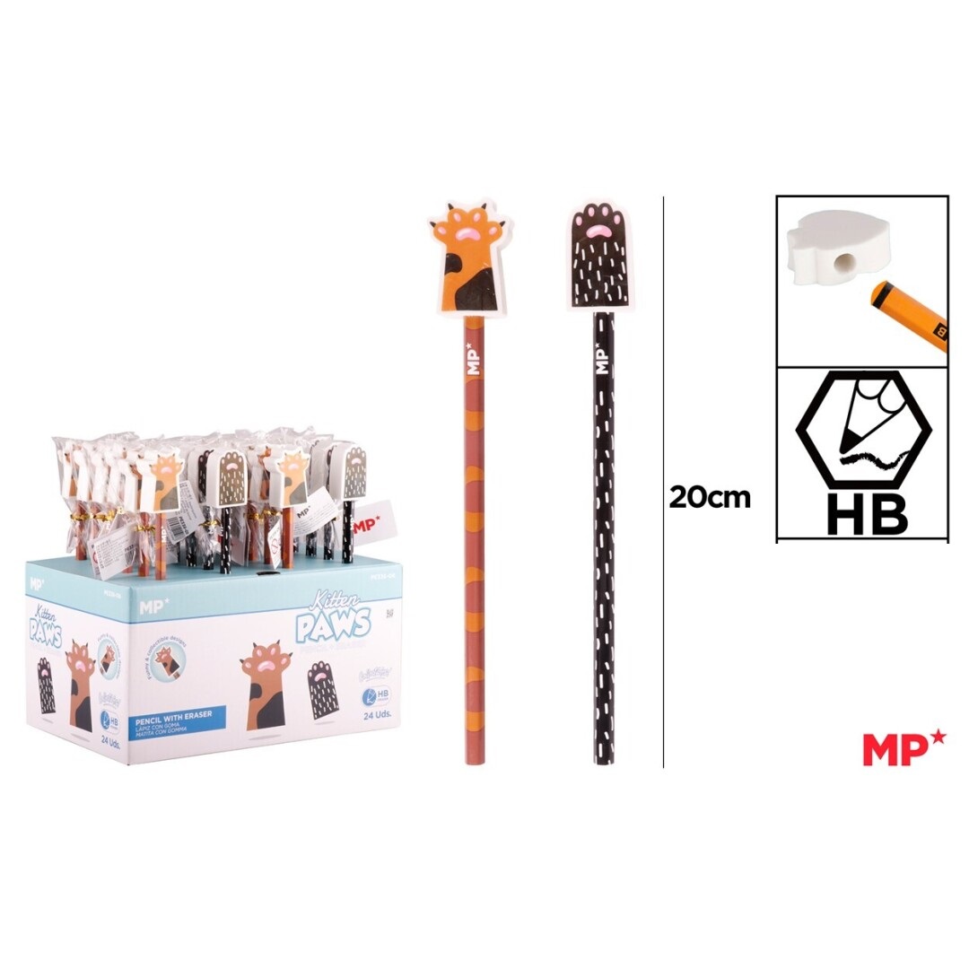 Creion grafit HB hexagonal cu radiera 2 modele kitten paw