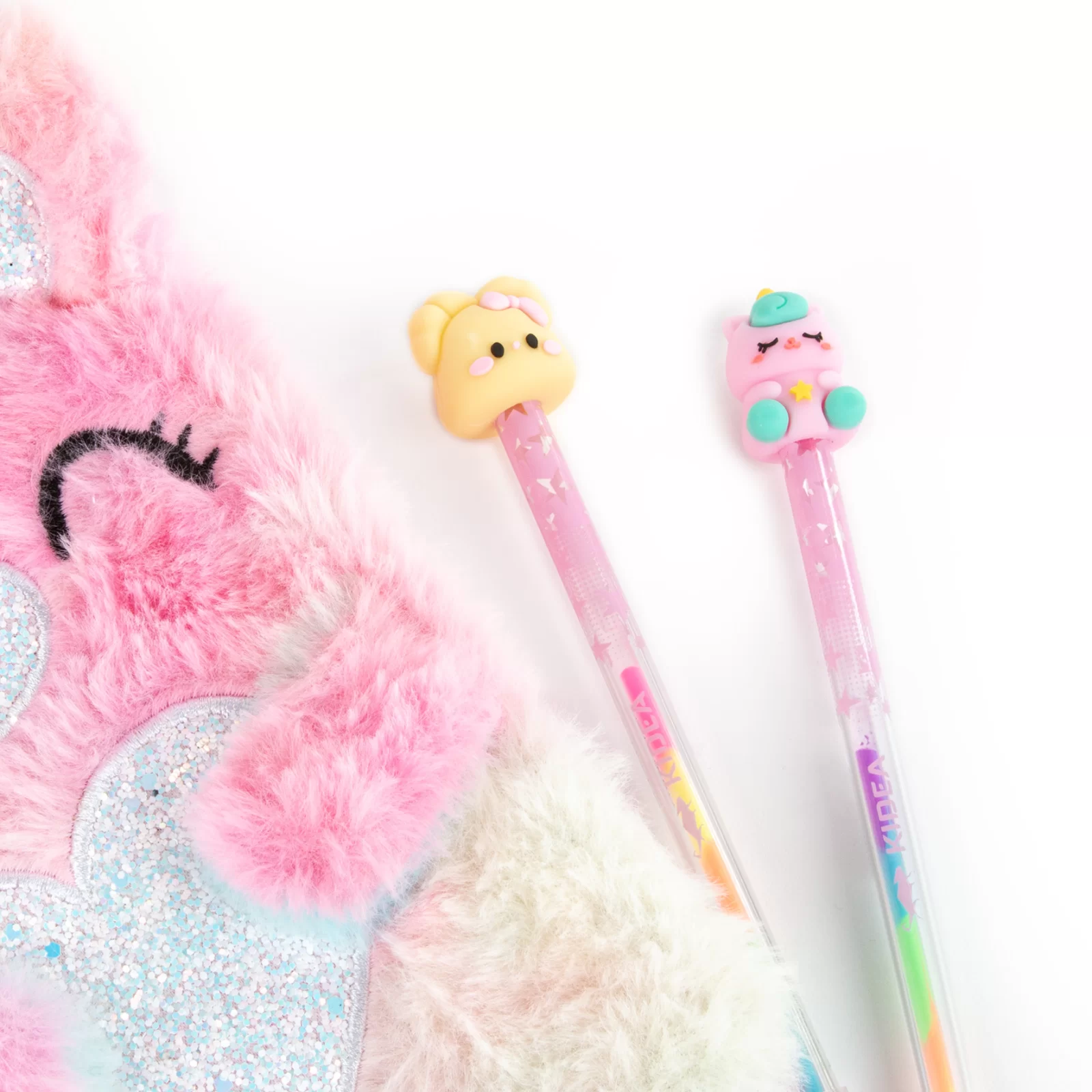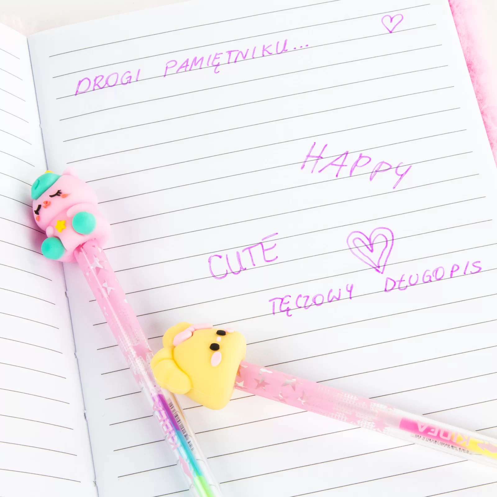 🌈 Set de 2 pixuri parfumate cu corp curcubeu și figurine, perfecte pentru a face notițele mai atractive