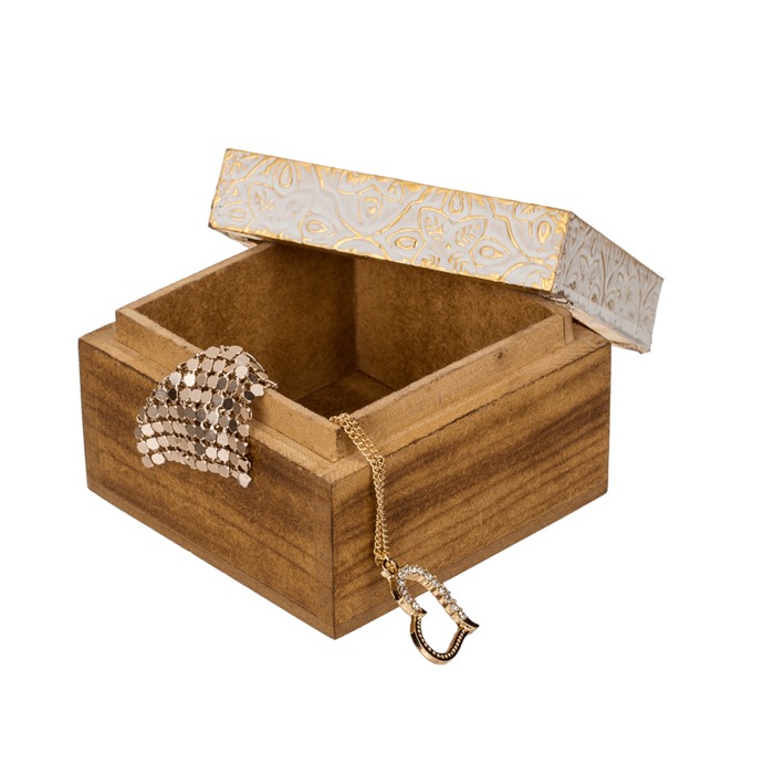 Cutia de bijuterii din lemn 2/set 230172 aduce o notă de eleganță și rafinament în păstrarea și organizarea bijuteriilor și a altor comori prețioase. Setul conține două cutii din lemn, una cu dimensiuni de aproximativ 10 x 10 cm și cealaltă de aproximativ 7.5 x 7.5 cm, oferindu-vă opțiuni versatile pentru păstrarea diferitelor obiecte.