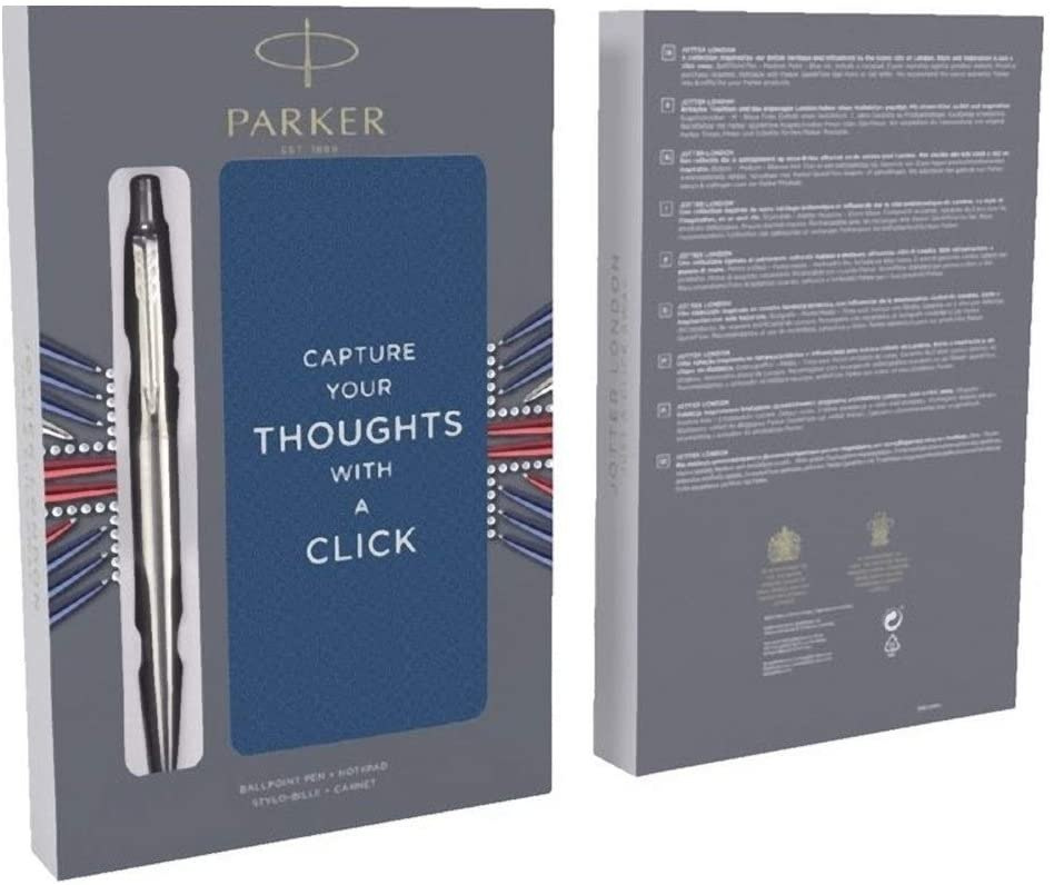 Etichete: stilou, accesibil, modern, Instrument de scris, set, Tradiție, Oțel inoxidabil, Lux, JOTTER STEEL, 160245, Caiet de notițe, Atemporal, Clip foarfecă, Parker, pix, Calitate, eleganță, notes