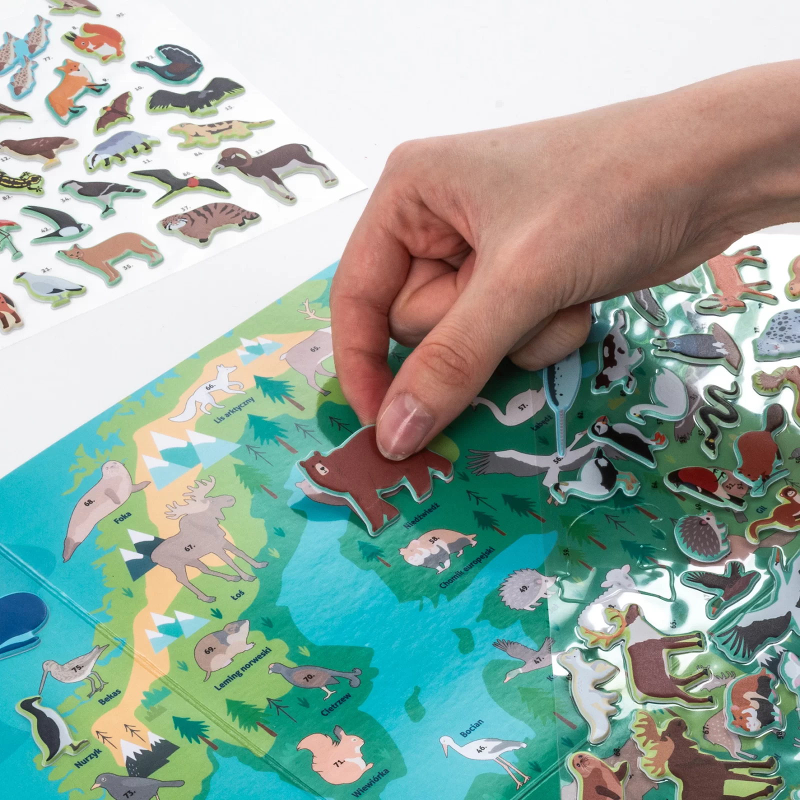 Harta Interactivă: Setul include o hartă a Europei și stickere cu animale, pe care copiii le pot plasa pe hartă conform marcajelor pentru a ilustra mediile lor naturale.