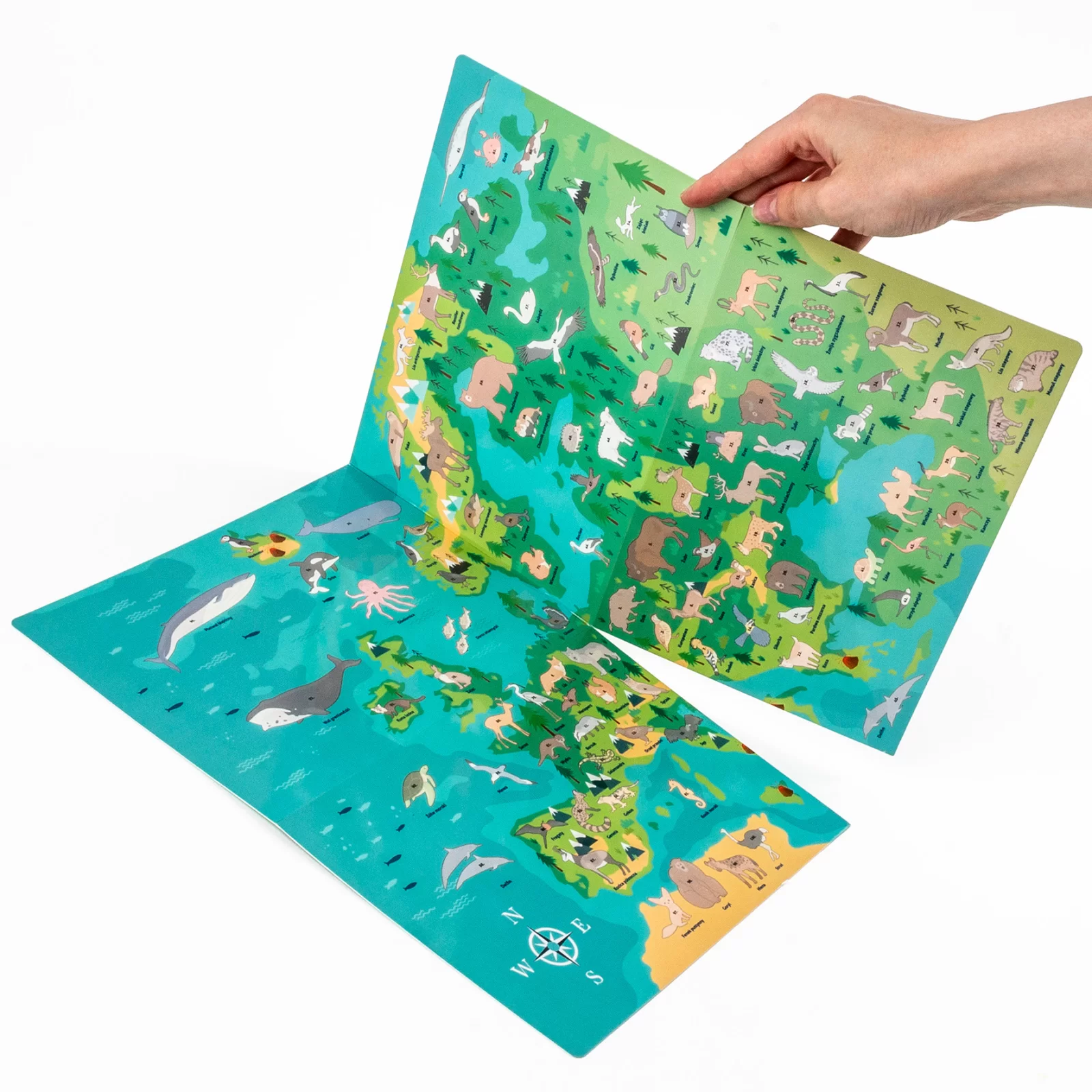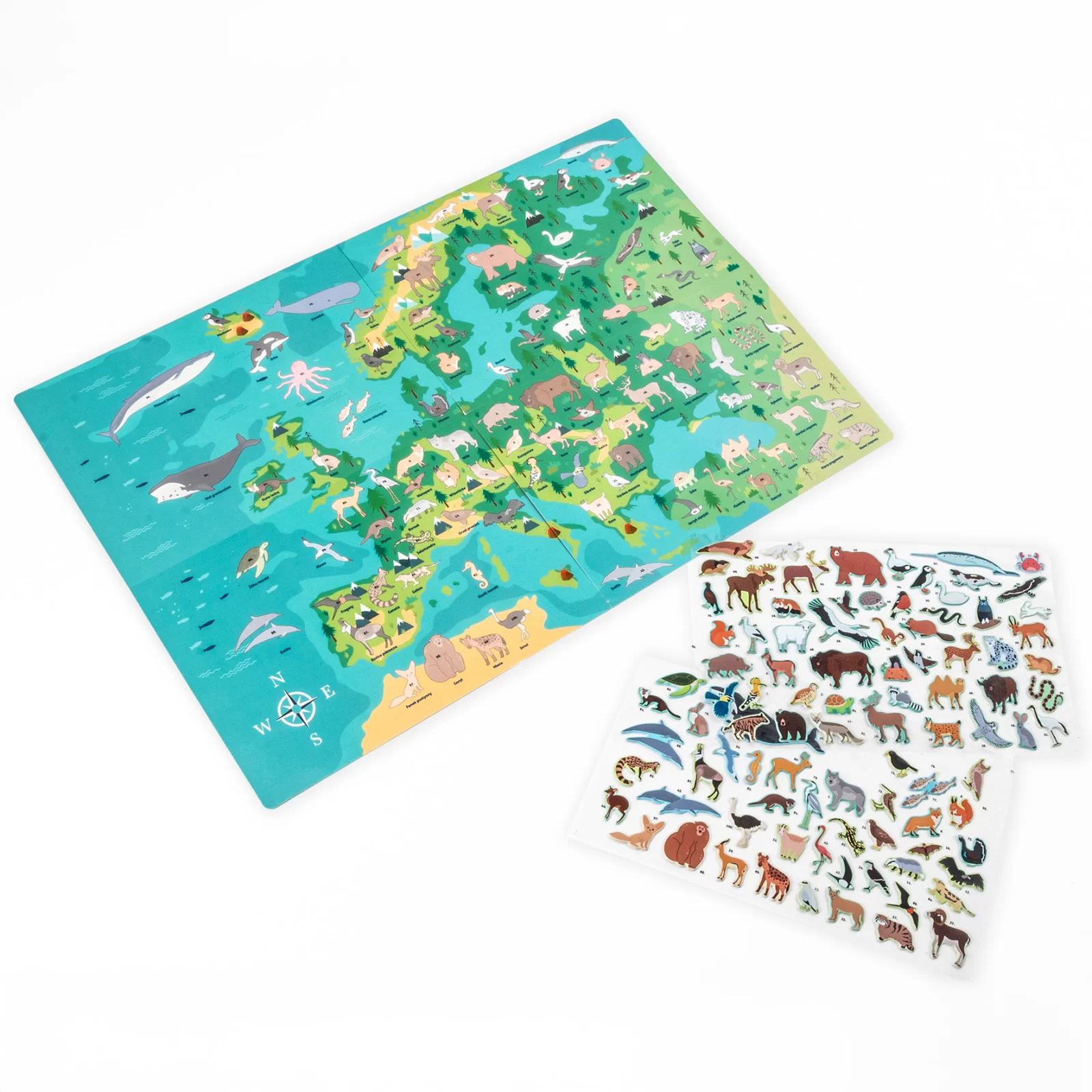 | Conținut | Hartă a Europei + Stickere cu animale + Joc de masă pe verso |