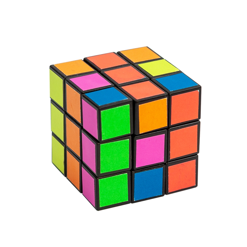 ndiferent daca aveti nevoie de un joc de inteligenta, o jucarie pentru anxietate, un joc puzzle 3D acest cub Rubik este foarte potrivit ca si joc de calatorie. Este practic si usor de purtat in geanta, astfel incat sa-l puteti scoate si distractia sa continue oriunde. Caracteristici: - Cubul Rubik 3x3 are un design cu 6 fete, fiecare fata avand 9 patrate intr-o singura culoare neon. - Cubul este un puzzle clasic de potrivire a culorilor in care, prin rotire, culorile se amesteca dezordonat, dar odata ce il rezolvați, devine din nou un cub perfect cu 6 fete, fiecare intr-o singura culoare. - Cubul are o dimensiune mica, nefiind un cub de viteza. Datorita faptului ca nu ocupa mult loc in bagaje, va puteti bucura de acest joc oricand doriti, chiar si in excursii. - Cubul magic poate promova sentimentul de spatiu si poate imbunatati memoria copilului. Joaca adultilor cu acest cub, in timpul liber, reduce presiunea si stresul iar la varstnici previne pierderea memoriei. - Acest joc nu se va demoda niciodata si ii va tine pe copiii departe de ecranele televizoarelor si telefoanelor. - Jucaria este realizata din plastic de calitate, non-toxic. - Pretul afisat este pentru 1 bucata. - Mod de ambalare produs: 36 bucati / borcan din plastic. Dimensiune cub: 3x3x3 cm Greutate cub: 0.01 kg Varsta recomandata: + 6 ani