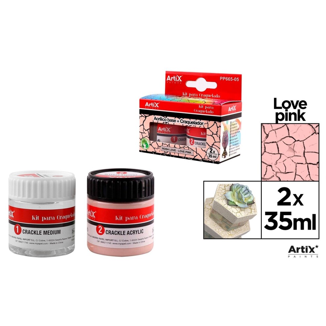 Kitul de crăpare conține lac medium și vopsea acrilică, ambele în borcane de 35 ml. Alege magia crăpării cu nuanța noastră de trandafiriu.