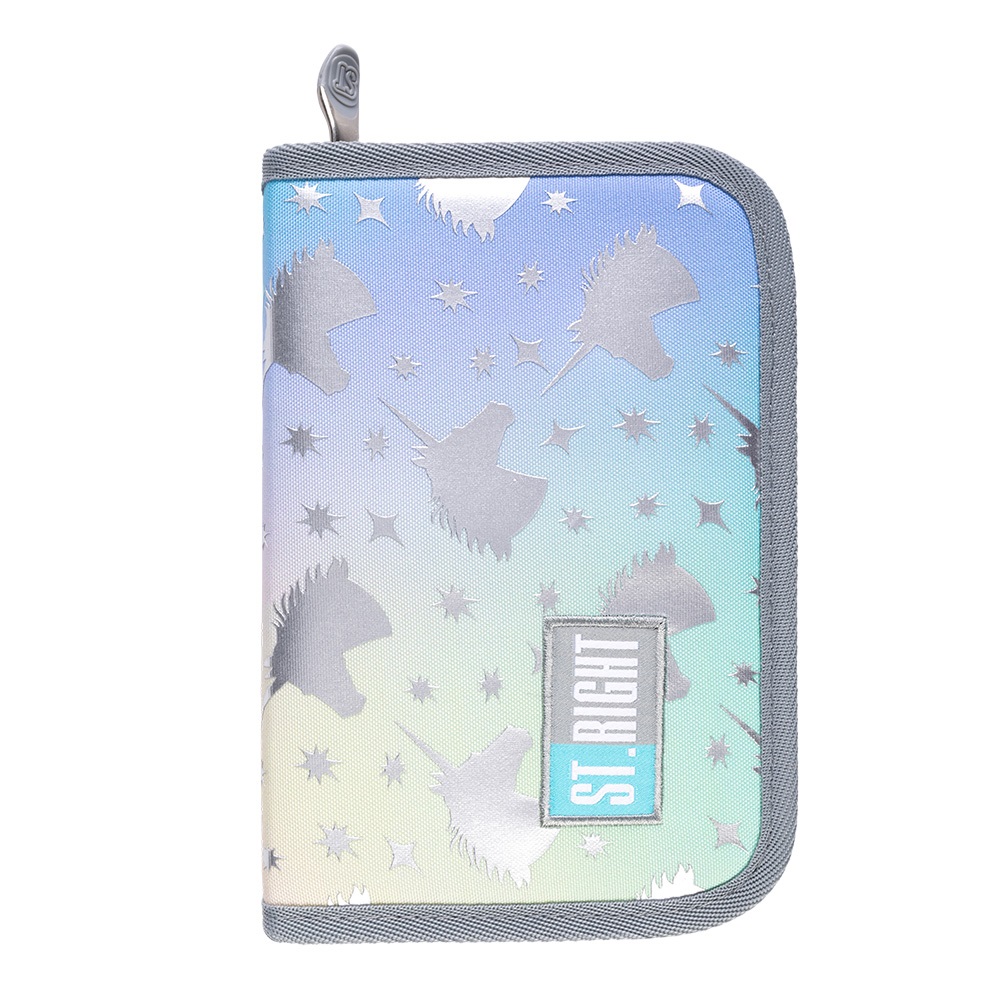 Penar neechipat, prevazut cu 1 fermoar si 2 extensii, Majewski, Gama St. Right, Colectia Ombre Unicorn, un penar compact si spatios. Penarul este realizat dintr-un material textil, de foarte buna calitate, rezistent si impermeabil. Penarul este prevazut cu un compartiment si 2 extensii, si dispune de o capacitate mare de echipare, oferind suficient spatiu pentru diverse rechizite: rigla, ascutitoare, compas, instrumente de scris sau instrumente de colorat. Cele doua extensii ale penarului sunt dotate cu cate un orar, si un cartonas cu tabla inmultirii. Fermoarul penarului este rezistent, dotat cu o zona de prindere cauciucata si profilata, pentru prindere usoara. Dimensiunile penarului sunt urmatoarele: 21x14x3.5 cm.