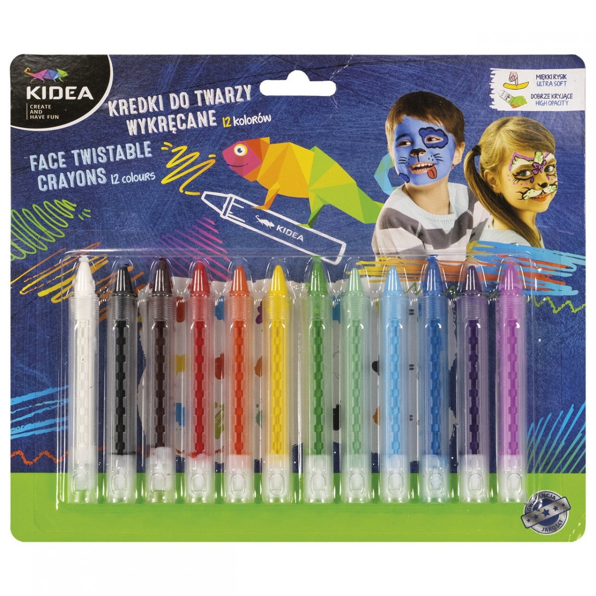 Set Creioane Pictura Pe Fata Retractabile 12 Culori Kidea Kdtw12ka