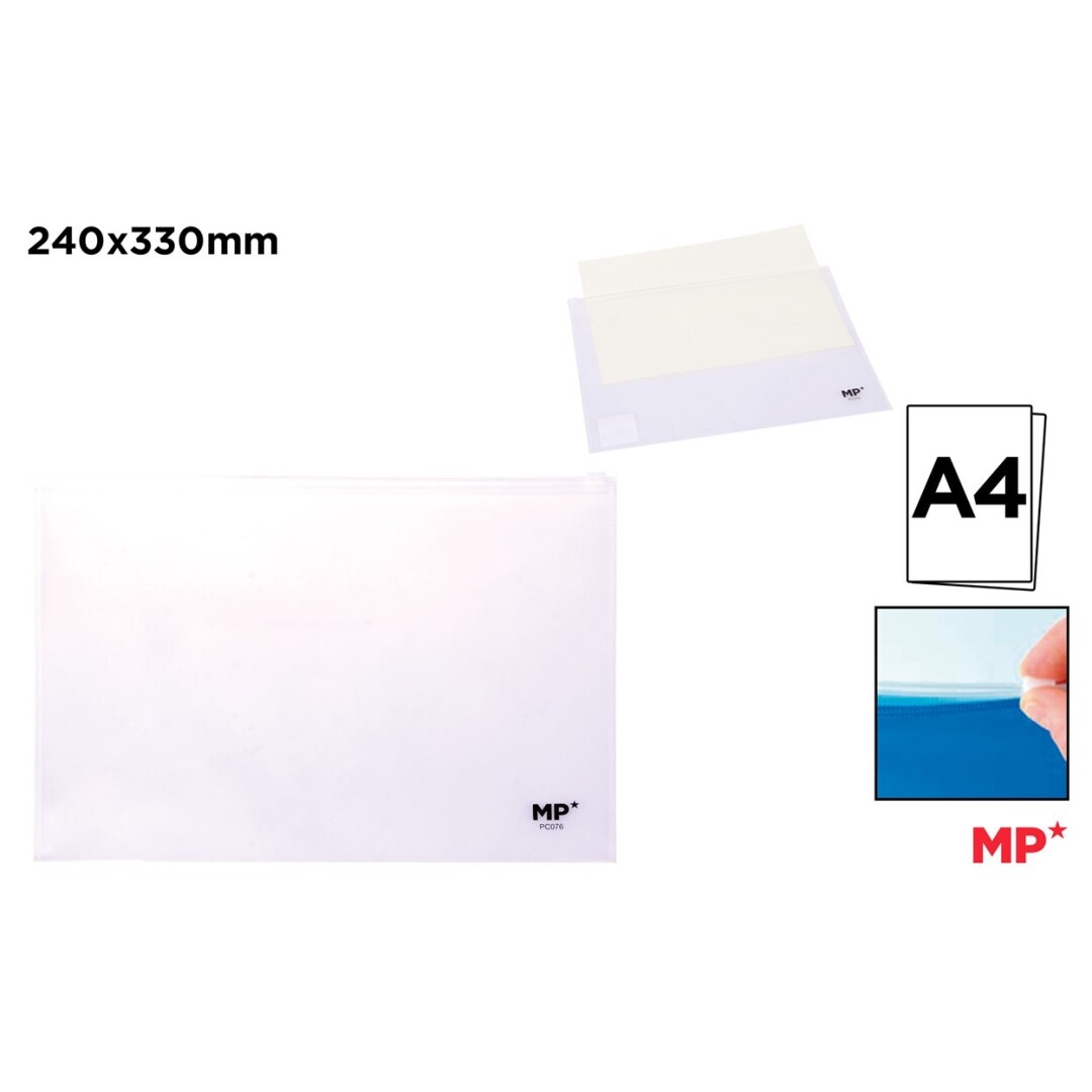 Etichete: Versatilitate, Durabilitate, transparentă, organizare documente, modern, fermoar, Mapă plastic IPB, Polipropilenă opacă, Întărire metalică, Păstrare articole de papetărie, Obiecte personale, Dimensiuni 240 x 330 mm, PC076, Culoare transparentă, Vizibilitate conținut, Ordine și stil., A4, Siguranță, eleganță, protectie