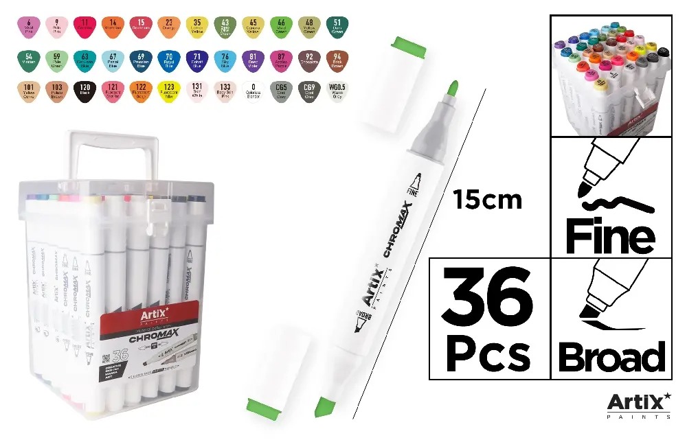 Acest set de markere versatile cu alcool este ideal pentru artiști, designeri și oricine dorește să își exprime creativitatea. Vârfurile sale duble oferă precizie și versatilitate, permițându-vă să creați linii fine, detalii delicate și zone mari de culoare.