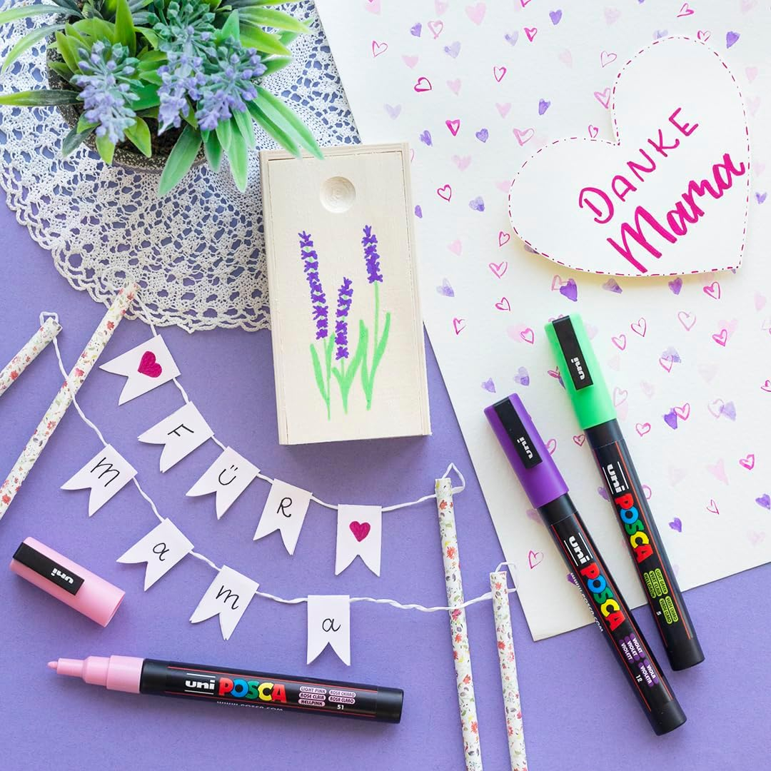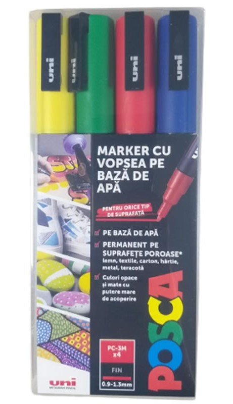 Setul de 4 markere Uni Posca PC-3M – culori vibrante și precizie pentru creație!