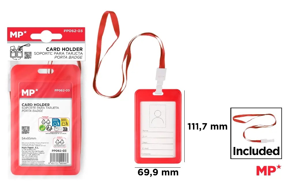 Buzunar Ecuson IPB 69.9*111.7mm Vertical cu Snur Roșu (PP062-03) - Soluția Perfectă pentru Identificare