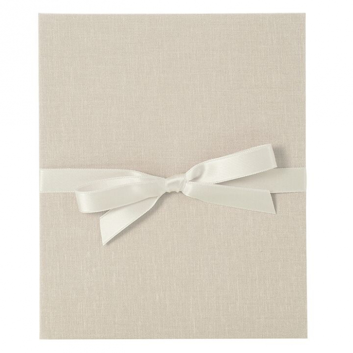 📷 Un album foto cu design rafinat, copertă din leinen de înaltă calitate, decorată cu o fundă albă, perfect pentru păstrarea amintirilor speciale sau ca un cadou elegant