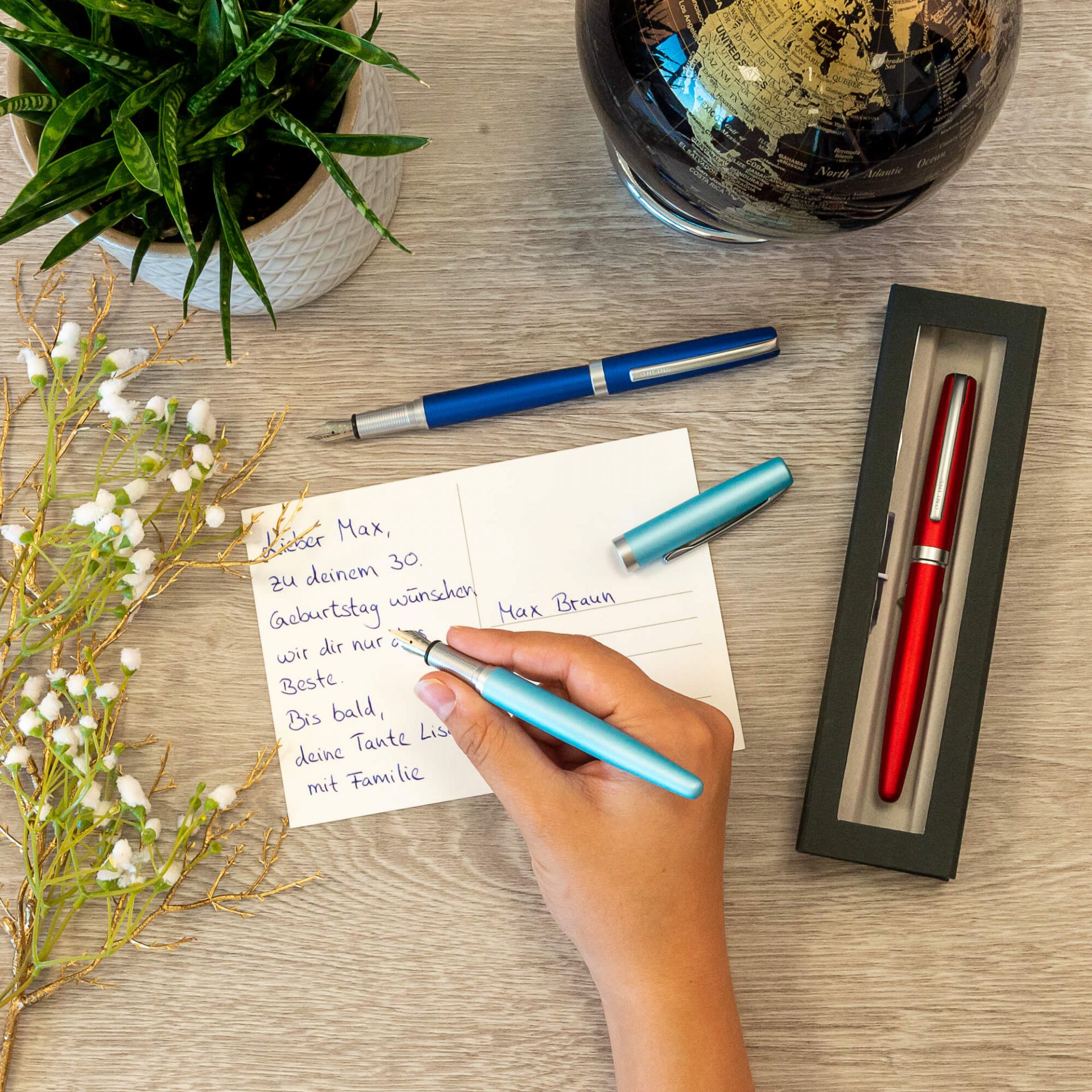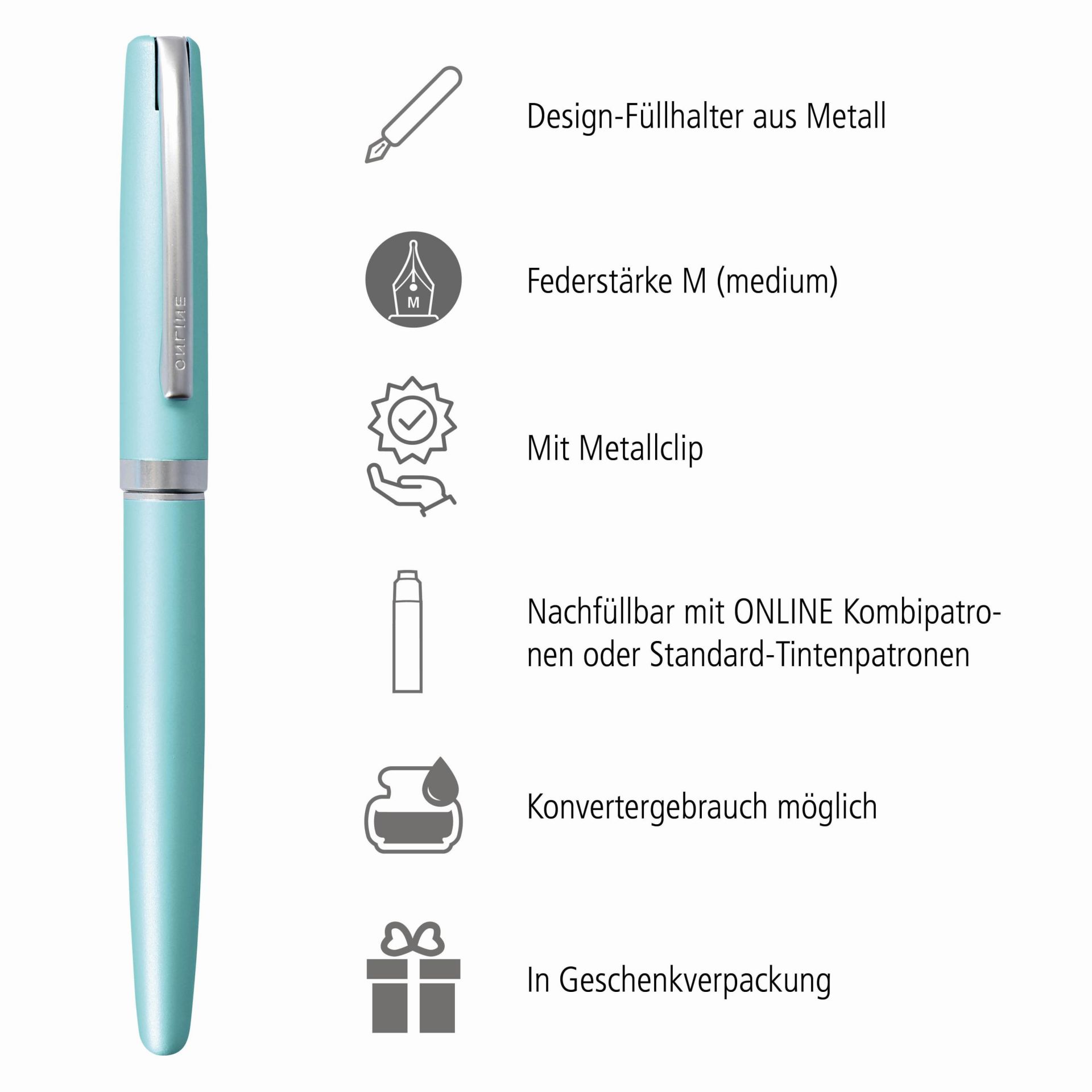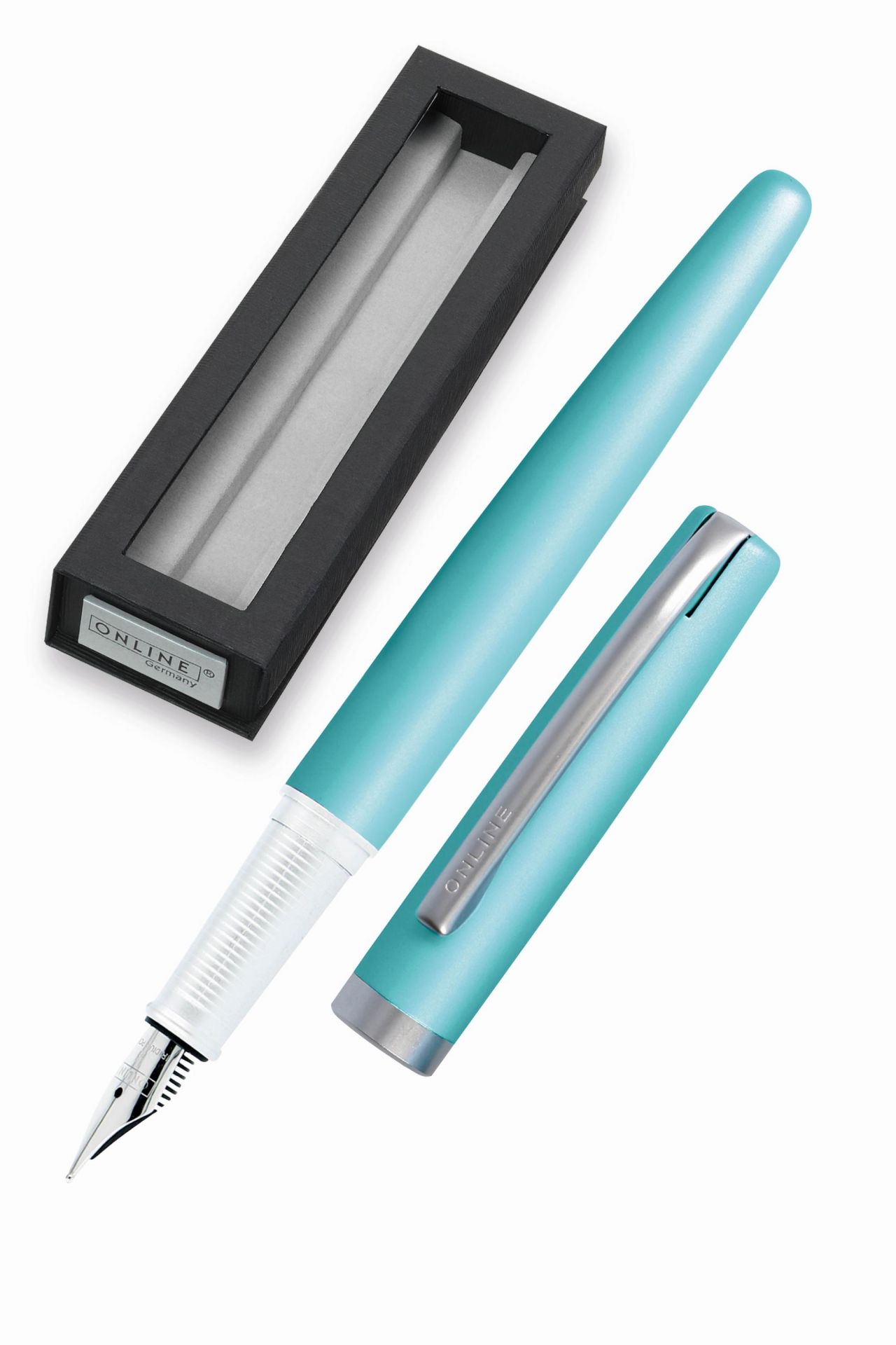 This ONLINE design metal fountain pen is equipped with a high-quality M nib (medium) and offers the highest level of writing. Delivered in the stylish box, every writing instrument is an elegant gift. Standard cartridges, converter possible; ONLINE grants a 5-year warranty on the iridium nib.