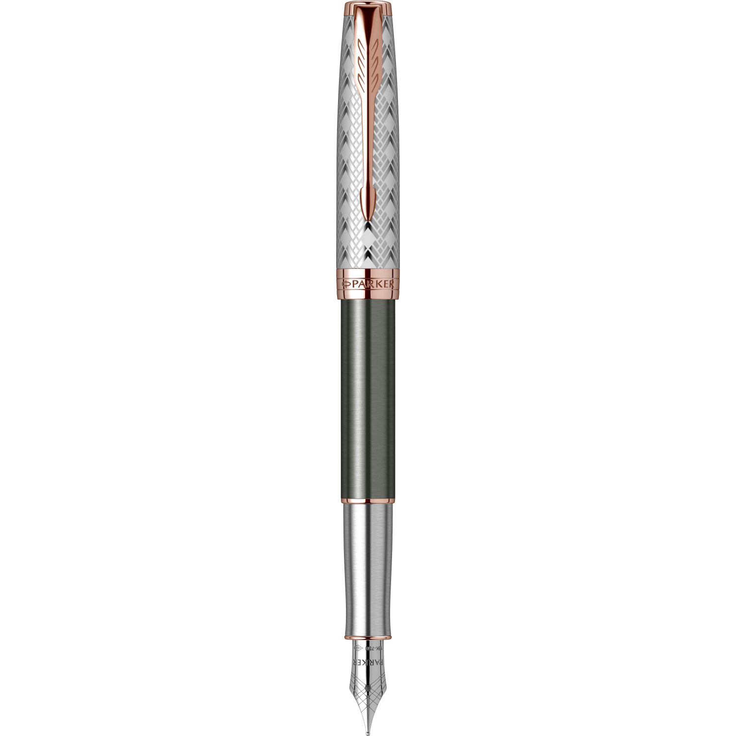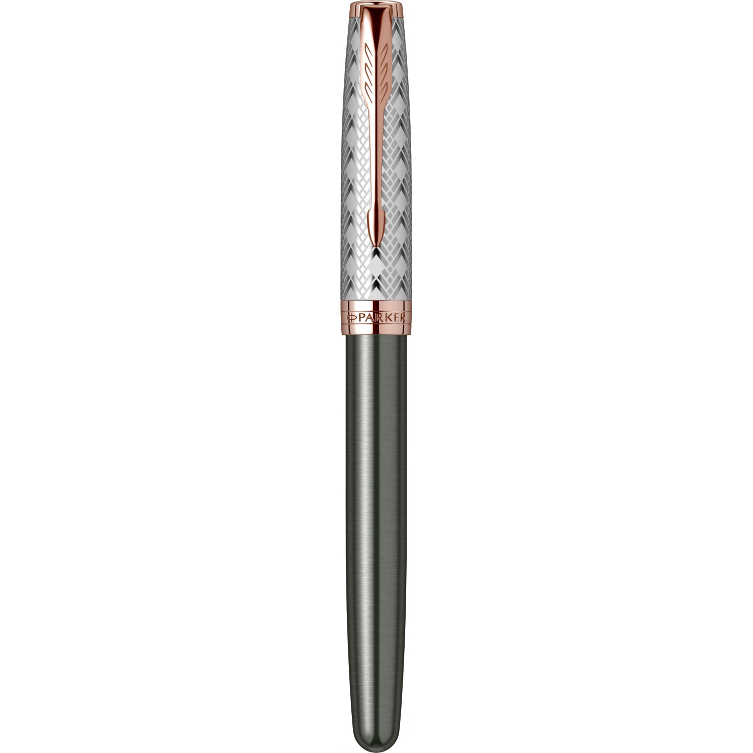 Etichete: Rafinament, Tradiție, Gama Sonnet, Vacumatic, Clip în Formă de Săgeată, Finisaj Fără Cusur, Colecție, Gama Royal, Finisaje Noi, Faimă, Strălucire, accesorii de lux, capac gravat cu model art deco, peniță din aur masiv de 18K, Sonnet Royal Metal & Grey PGT, Metale nobile, Tradiție britanică, Sofisticat, Bun gust, Eternitate, Cadou de neuitat, Alamă placată cu aur roz, Oțel inoxidabil placat cu aur roz, Grip din alamă placată cu paladiu, Lac satinat gri, Convertor de cerneală, Producător Parker, STILOU parker, Calitate, eleganță