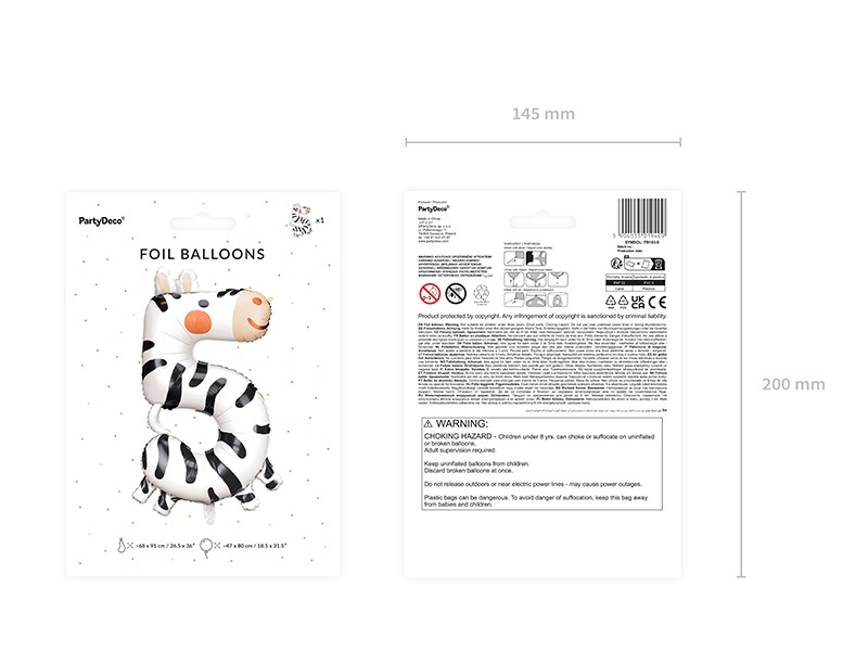 Etichete: Dimensiuni, balon, Stil, Folie, comandă, Culori mixte, Umflare, Aer, Helium, Pai pentru umflare, Decor eveniment, Foil balloon, 68x98cm, Number 5 - Zebra, Mix FB163-5, Sălbatic, Exotism, aluminiu, Farmec