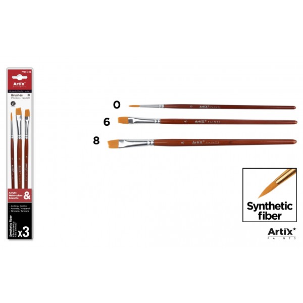 Set pensule profesionale din par sintetic, cu varf drept si coada scurta, Artix.