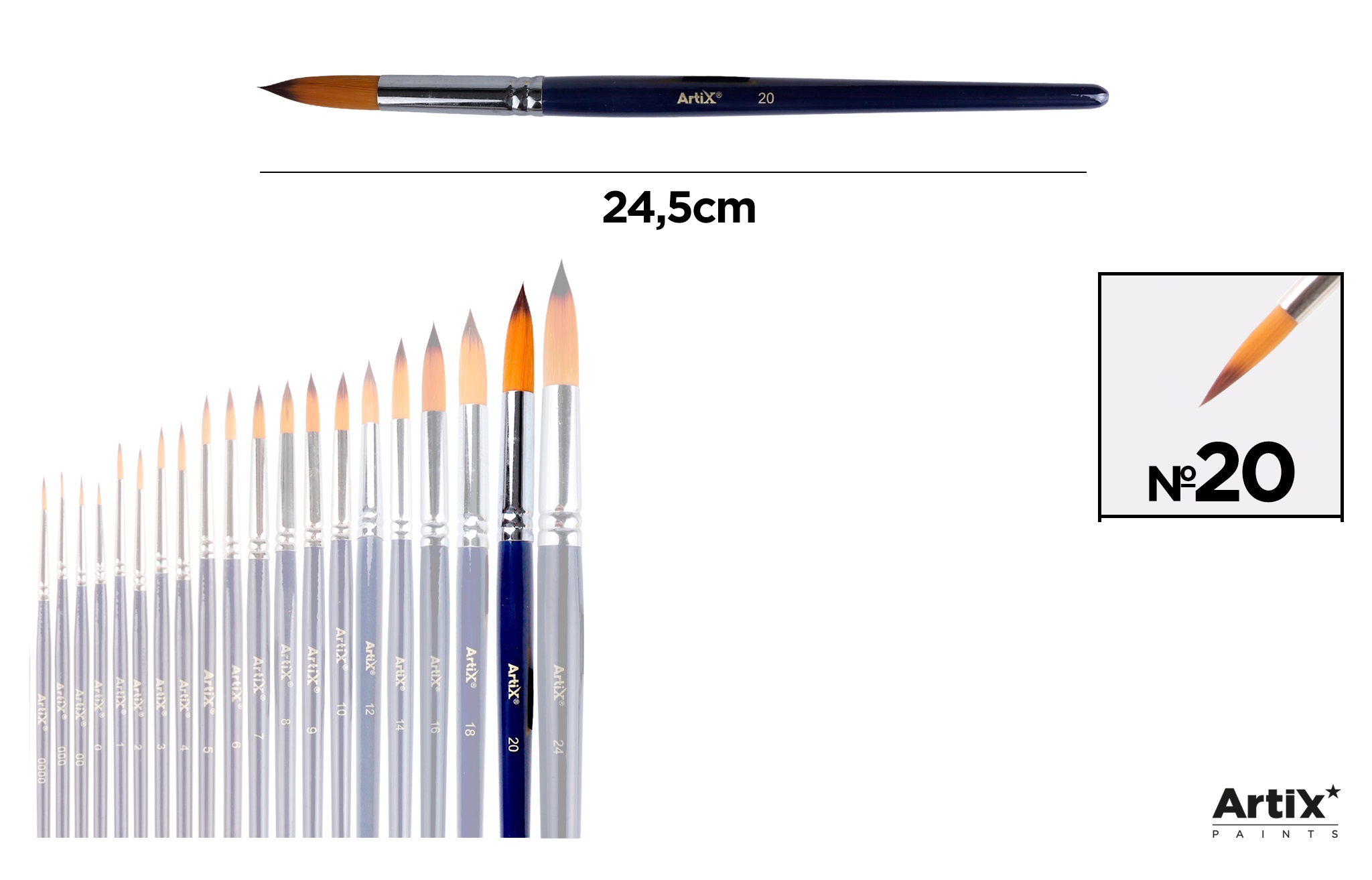 Pensula profesionala din par sintetic, cu varf rotund si coada scurta, Artix.