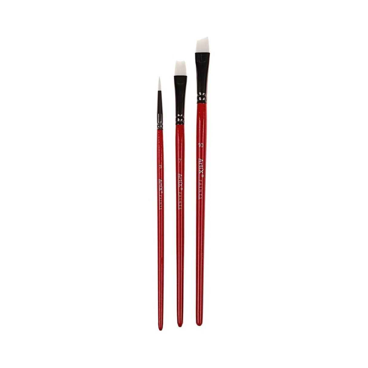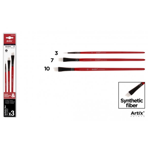 Set pensule profesionale, din par sintetic, cu varf liner, drept sau oblic si coada scurta, Artix. Pensule rezistente potrivite pentru majoritatea tehnicilor de pictura, de la culorile acrilice, pana la acuarele, tempera sau guase. Acest tip de pensule sunt ideale pentru trasarea unor linii groase - subtiri, permite realizarea de detalii, retusuri finale sau umplerea suprafetelor. Setul contine 1 pensula liner marimea 3; 1 pensula cu varf drept marimea 7 si 1 pensula cu varf oblic marimea 10. Pretul se refera la un set de 3 pensule.