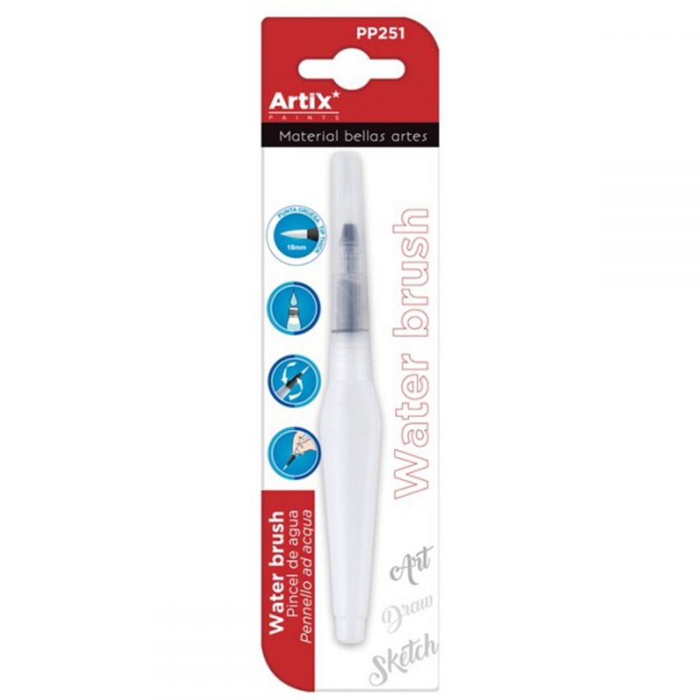 Pensula sintetica cu varf rotund si rezervor, potrivita pentru desen, caligrafie si grafica. Rezervorul se poate umple cu apa sau cu tus colorat. Pensula cu rezervor poate fi folosita cu apa la fixarea cretei pe hartie, impreuna cu creioane acuarelabile sau acuarele. La fel de bine, se poate utiliza si pe panza. Varful subtire si textura fina permite realizarea cu usurinta a detaliilor. Dupa folosire cu tus se recomanda spalarea varfului. Lungime varf: 18 mm. Pretul se refera la o bucata.