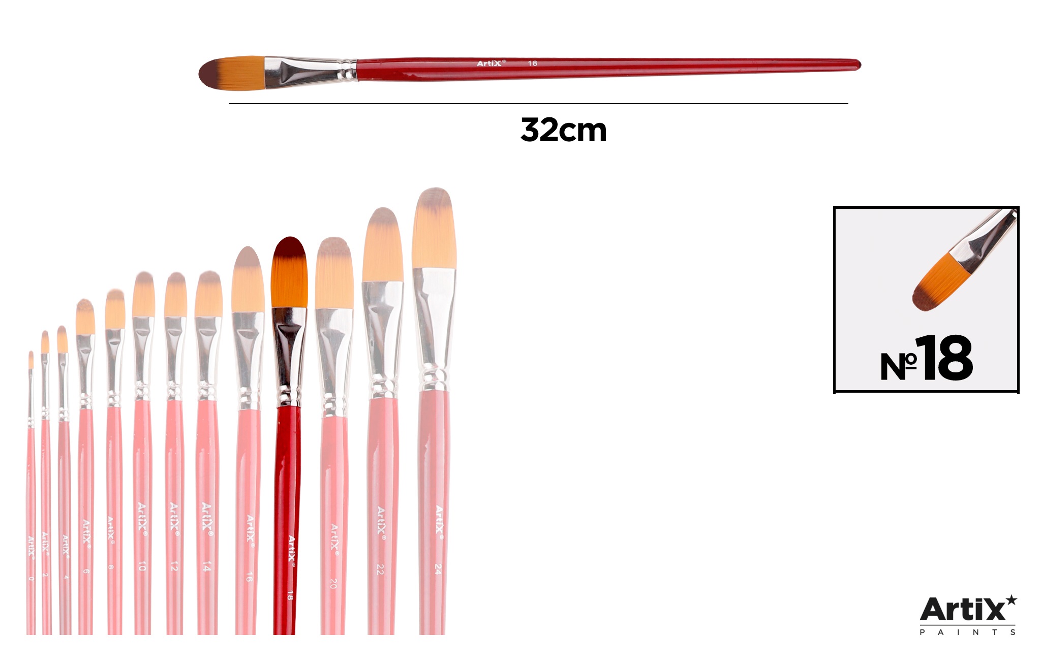 Pensula profesionala, din par sintetic, cu varf limba de pisica (filbert) si coada lunga, Artix.