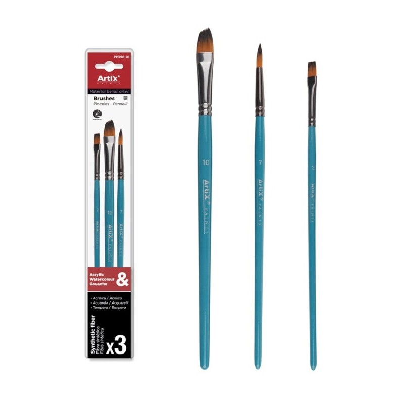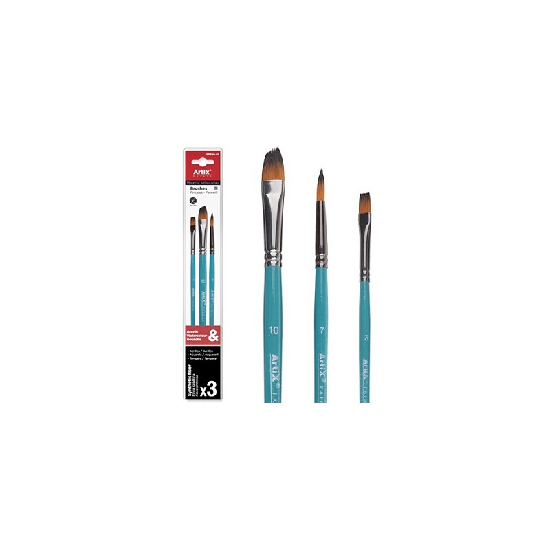 Un set de pensule sintetice Artix pentru acrilice, acuarele și tempera, format din 3 piese.