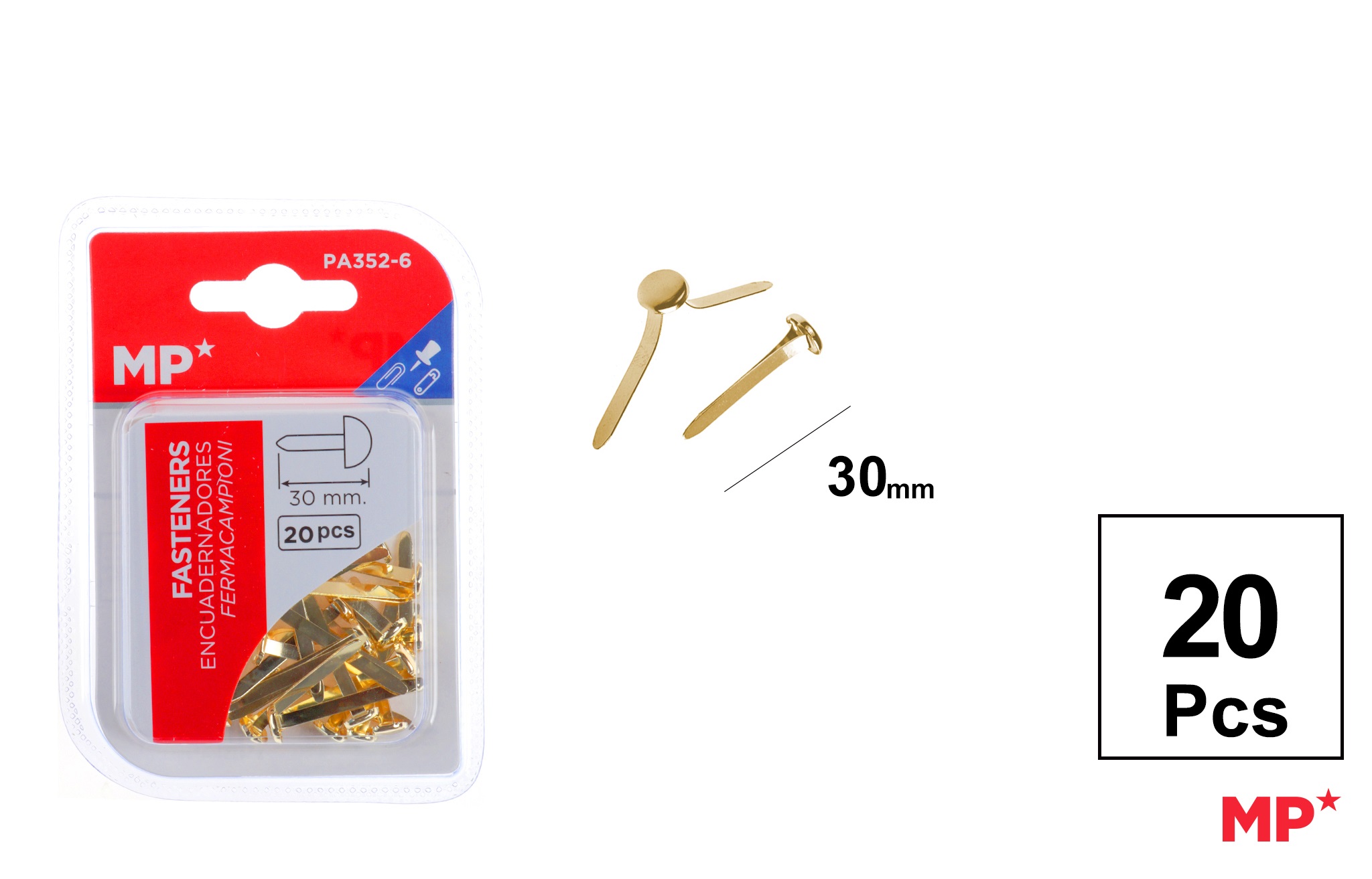 PIONEZE din alamă cu cap rotund semicircular cu două brațe care, atunci când sunt deschise, împiedică căderea documentelor. Dimensiune: 30 mm. Aur. Cutie cu 20 de unitati.