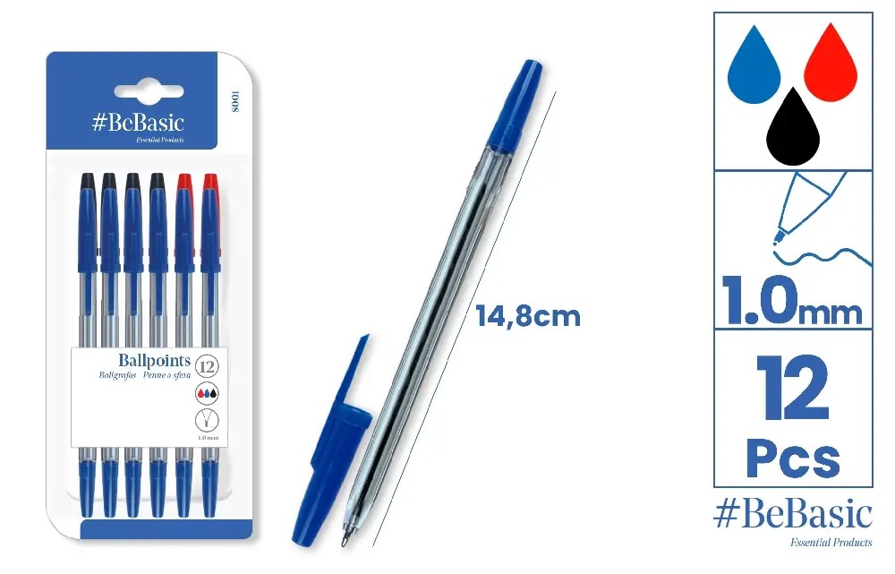 Pix cu Gel BeBasic 1.00mm - Set 12 Bucăți (S001) - Versatilitate și Comfort în Scriere