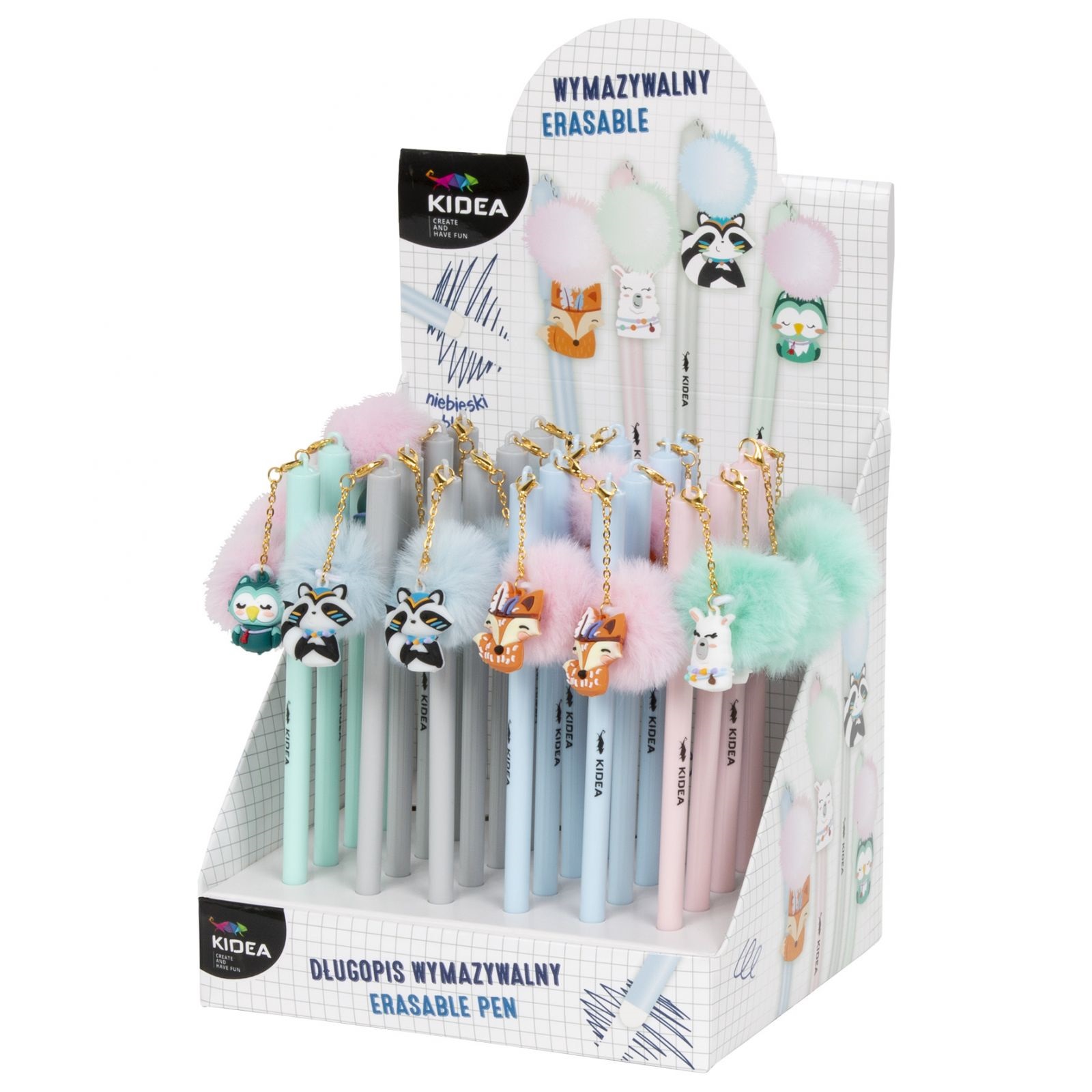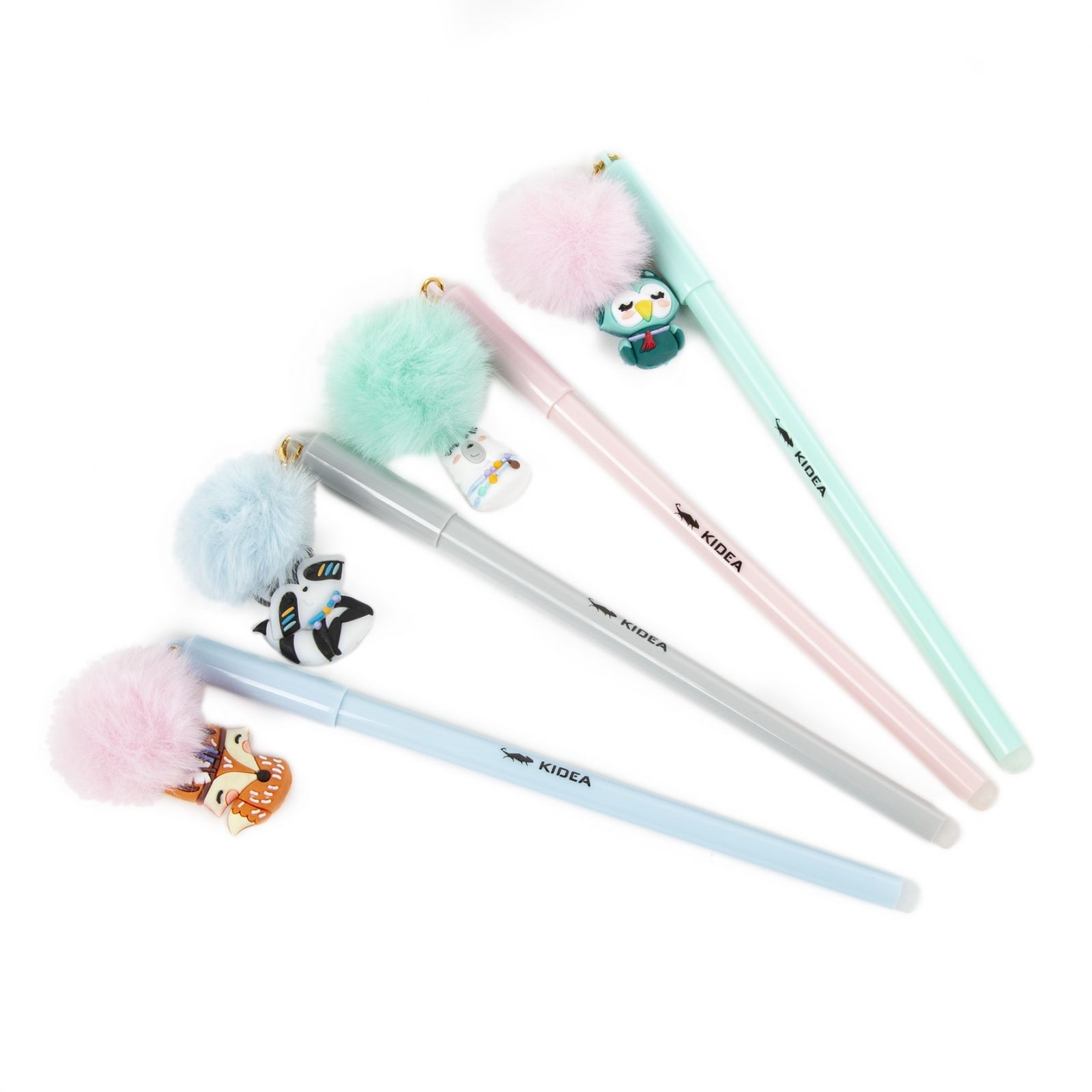 Fiecare stilou are si un pompon pufos, care, impreuna cu o figurina a unui animal, este agatat cu un lant detasabil.