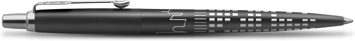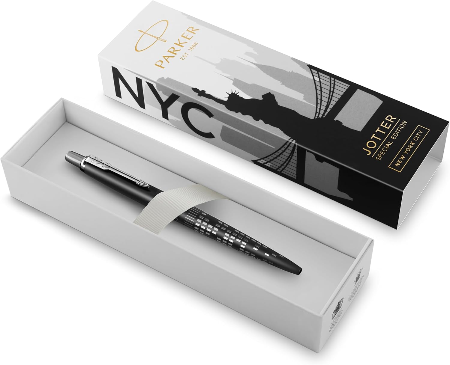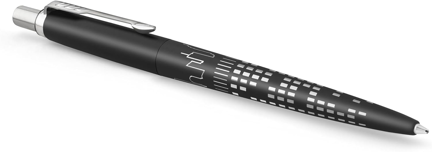 Etichete: pix parker jotter, garantie internationala, design îndrăzneț, parker jotter nyc negru, pix cu bila, instrument de scris parker, colectie global icons, new york, cladiri zgariate, experienta de scris confortabila, partener de calatorie