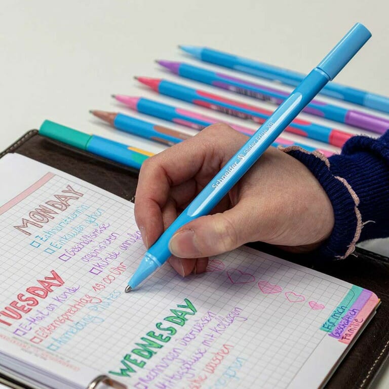 Pix cu inovativa tehnologie Viscoglide® pentru scris extrem de usor si alunecos. • Corp cu parti cauciucate pentru scriere relaxata si confortabila. • Capacul are culoarea cernelii si poate fi inversat. • Pixul nu se rostogoleste pe birou, iar forma subtire se potriveste in sertarele de birou sau in penarele elevilor. • Cerneala neagra este rezistenta la apă, conform ISO 12757-2. • Varf de scriere de 1,4 mm. Pix Schneider Slider Edge XB cu tehnologie Viscoglide® pentru o scriere extraordinar de neteda si alunecoasa. Ideal pentru proiectele de desen si pictura, deoarece cerneala speciala nu se va intinde nici macar pe hartie absorbanta. Corpul cu trei fete din cauciuc generos este conceput pentru scris relaxat, fara oboseala a mainilor. Forma sa subtire se potriveste perfect in penarele copiilor scolari sau in sertarele de birou. Capacul se potriveste bine la ambele capete ale pixului. Varful din otel inoxidabil rezistent la uzura garanteaza ca sursa mare de cerneala poate fi utilizata pe deplin si nu murdareste. Caracteristici: Cerneala cu uscare rapida; Nu se rostogoleste de pe birou; Produs CO2 neutru.