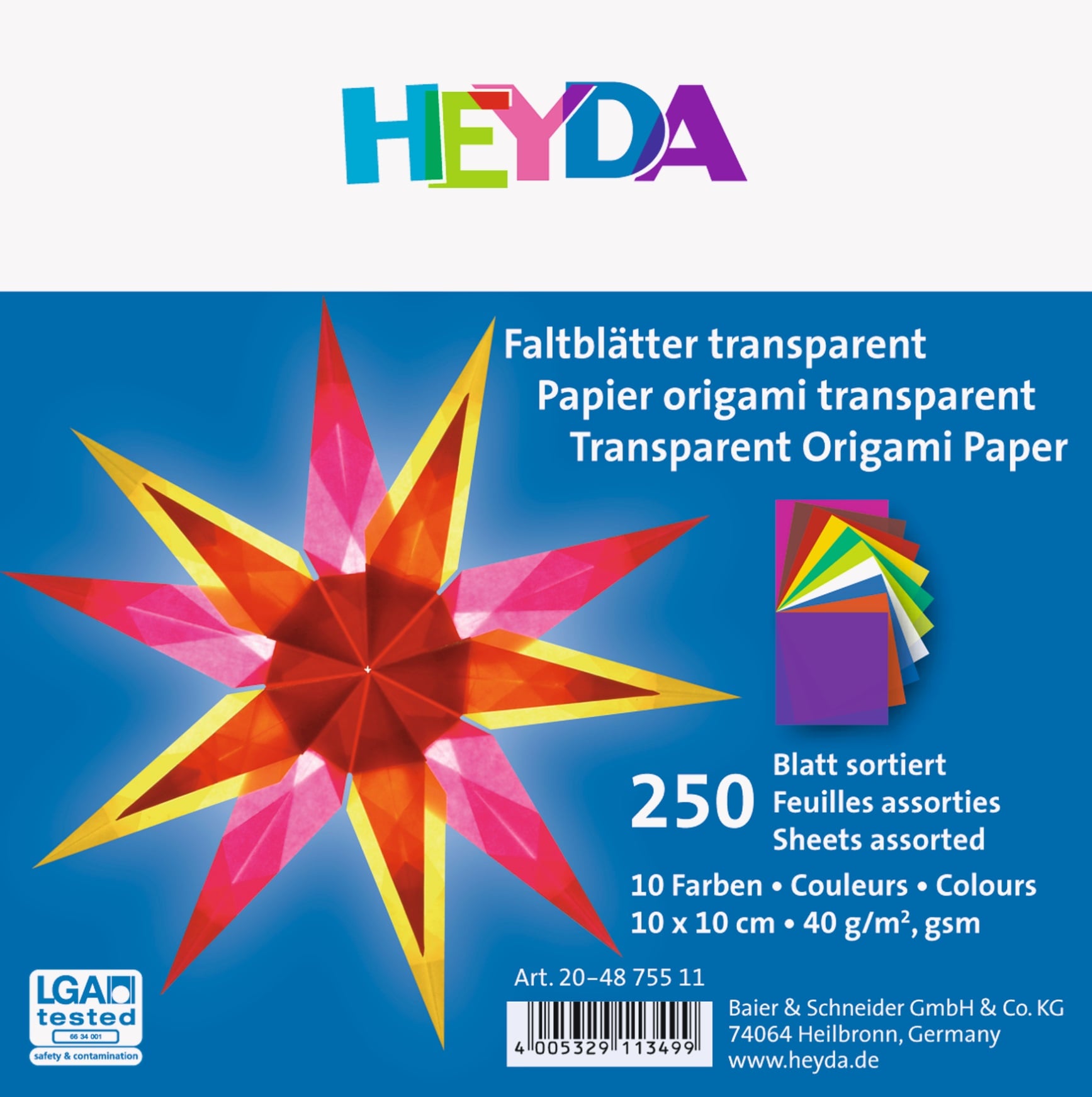 HARTIE ORIGAMI 10*10CM 250/SET CULORI ASORTATE 4875511, Heyda