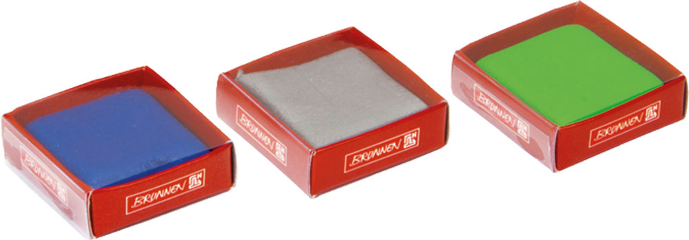 Radiera modelabila intr-o cutie de plastic, disponibila in 3 culori: albastru, verde si rosu