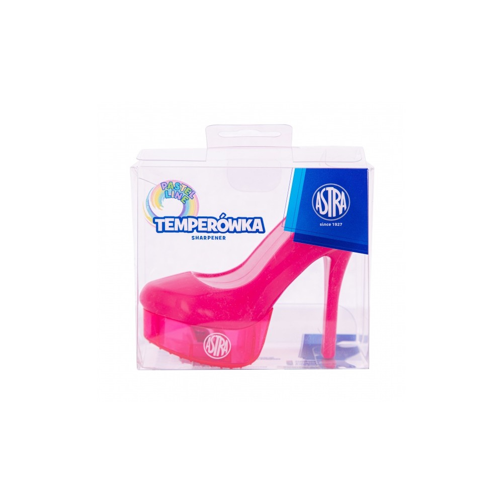 Ascuțitoarea Astra Pastel Line (cod 404022001) este un accesoriu de papetărie din colecția Pastel Line a producătorului european Astra Polska, cu corp din plastic rezistent în formă de pantof elegant cu toc, disponibilă în nuanțe pastelate de violet sau roz, echipată cu lamă din oțel carbon și container transparent detașabil pentru colectarea reziduurilor. Față de ascuțitoarele standard, aceasta combină funcționalitatea practică cu un design decorativ inedit care transformă un accesoriu utilitar într-un obiect de colecție și personalizare a biroului. Containerul integrat transparent o diferențiază suplimentar față de ascuțitoarele simple fără recipient, eliminând problema reziduurilor împrăștiate în penar sau pe birou. Este disponibilă pe ipb.ro.