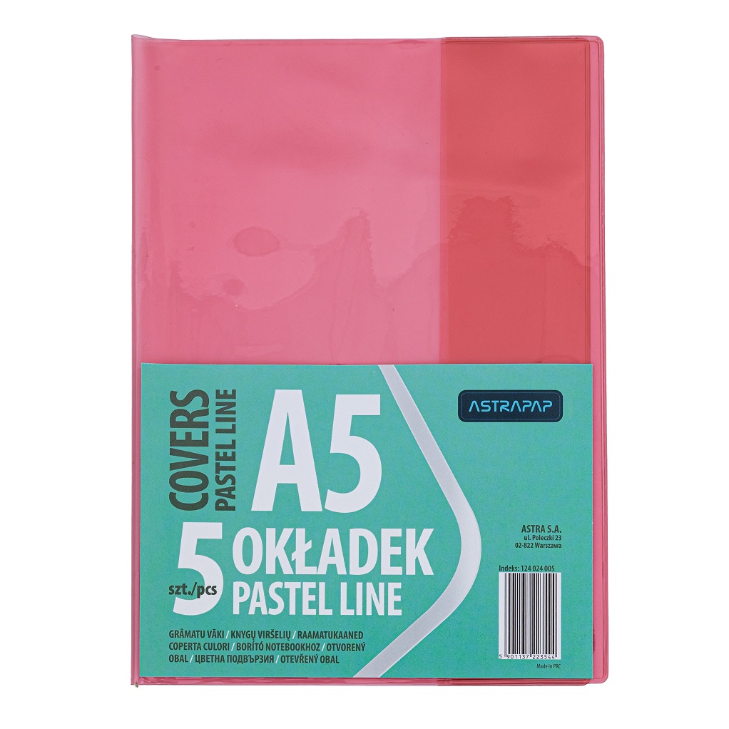 Caracteristici: Format: A5 (21.7 cm x 14.8 cm) Material: PVC rezistent Grosime copertă: 0.15 mm Lățime (desfășurată): 31.1 cm Tip coperta: Fixă (neindividuală) Culori: Setul include 5 culori pastel delicate Beneficii:Ideală pentru caiete, agende sau cărți cu dimensiuni A5.