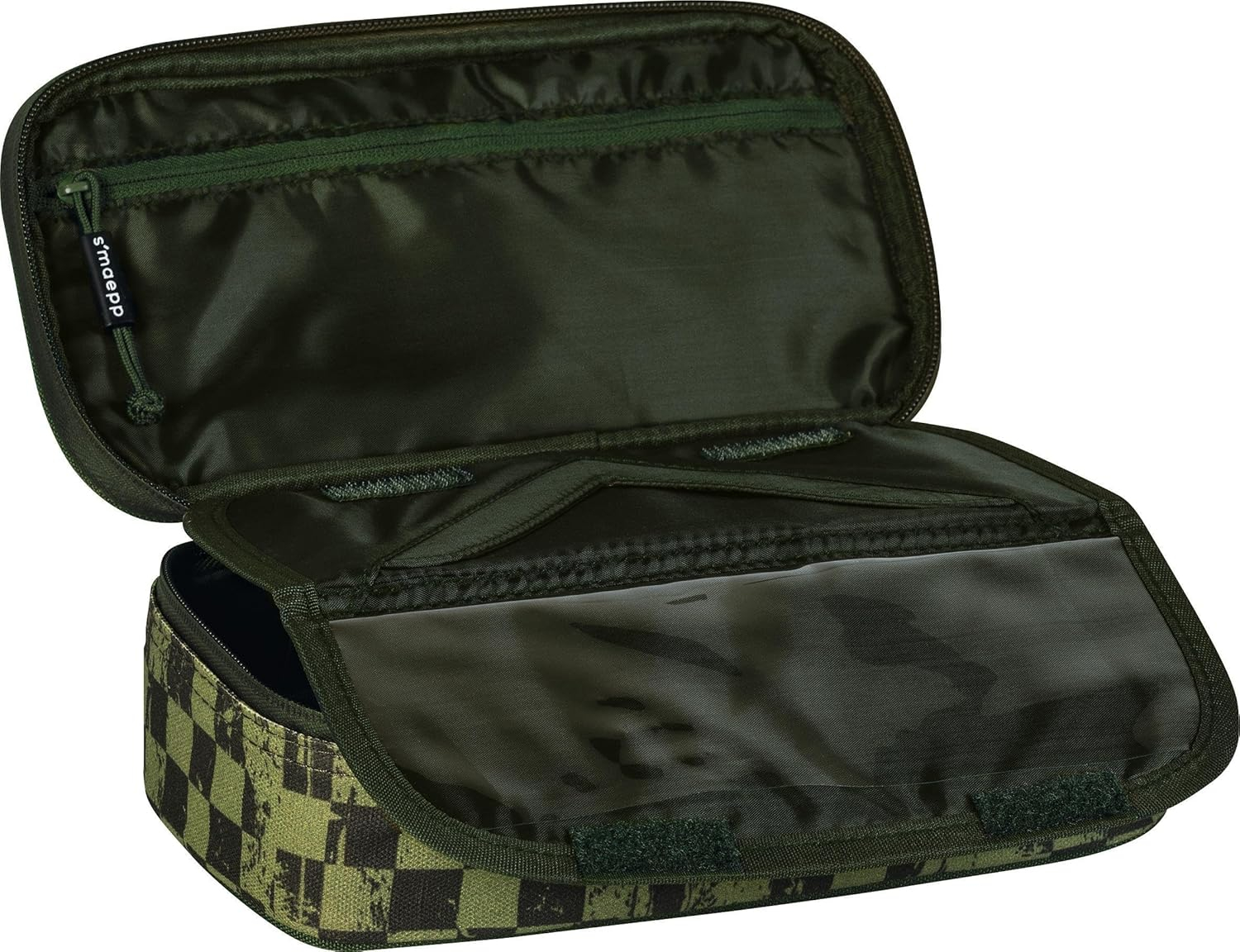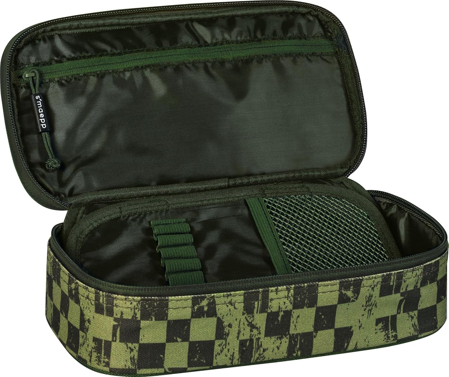 Penarul S'maepp Fast Wheels este un penar neechipat de 220 x 60 x 110 mm, realizat din fibră sintetică robustă, cu design „outdoor” și motiv Fast Wheels verde, produs de Baier & Schneider Germania, disponibil pe ipb.ro. Dispune de un fermoar principal ascuns, clapă interioară cu bucle elastice pentru instrumente și buzunar plasă pentru accesoriile mici. Capacitatea include un compartiment pentru smartphone și spațiu pentru instrumente de geometrie, combinând stilul dinamic cu funcționalitatea profesională.