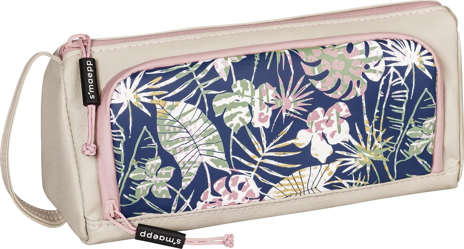 BR PENAR S'MAEPP L JUNGLE ROSE 21x11.5x8CM – un penar spațios și vibrant, perfect pentru școală, cu imprimeu jungle colorat și dimensiuni de 210x80x115 mm, confecționat din nylon durabil.