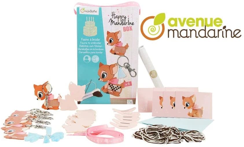 Avenue Mandarine este un brand francez de jocuri educative aparținând grupului Clairefontaine Rhodia. Produsele noastre de înaltă calitate îndeplinesc cerințele dumneavoastră pentru a vă satisface dorintele copiilor și a-i însoți în descoperirea, jocul și trezirea simțurilor lor. Zi de naștere sau moment creativ cu prietenii? Echipa Avenue Mandarine dorește să vă însoțească în acest moment prețios cu această cutie completă: 6 felicitări de invitație sau de mulțumire, activitate creativă pentru 6 copii, panglici de prietenie de oferit oaspeților, o notă explicativă. Fericire, împărtășire și mici intenții... sinonimele unei petreceri reușite. Iată un kit complet care permite desfășurarea unei activități creative de către un grup de 6 copii. Include: 6 căprii față cu breloc, 6 căprii din spate, 6 pampooane albastre, 6 ace, 6 x 2 fire de brodat, 6 felicitări de invitație, 6 brățări de prietenie, instrucțiuni. Conform standardelor CE - De la 7 ani.