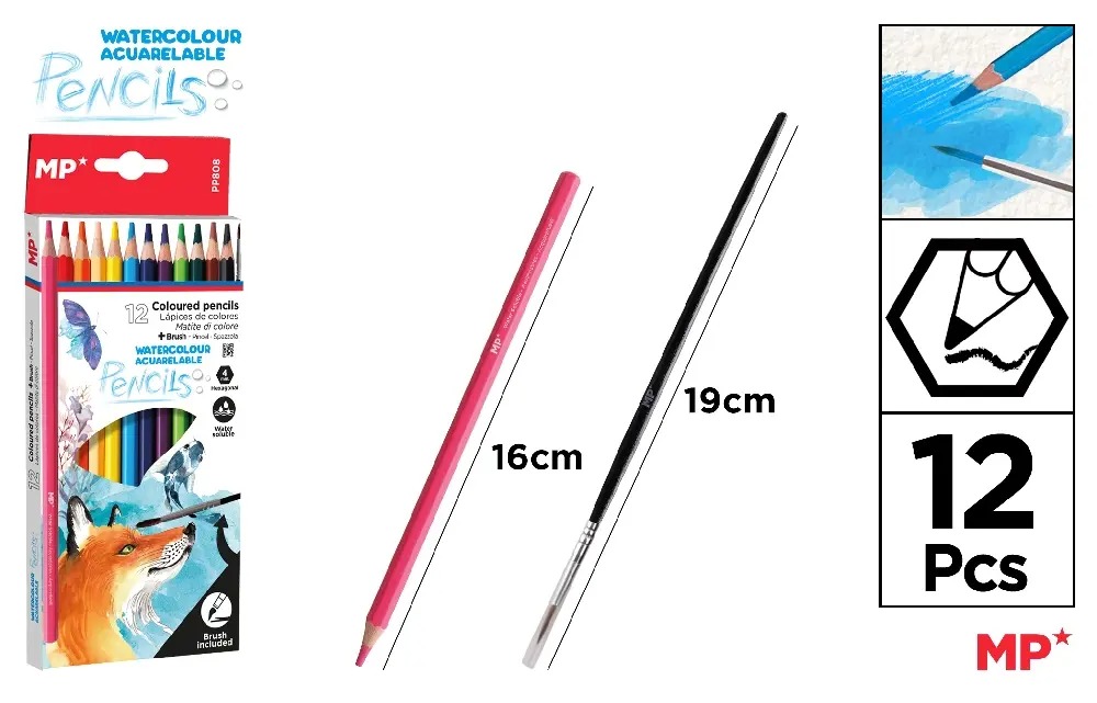 Creioane Colorate IPB 12/Set Aquarell + Pensulă PP808 îți permit să îți exprimi creativitatea într-un mod inovator, fiind perfecte pentru realizarea de desene atât acasă, cât și la școală.